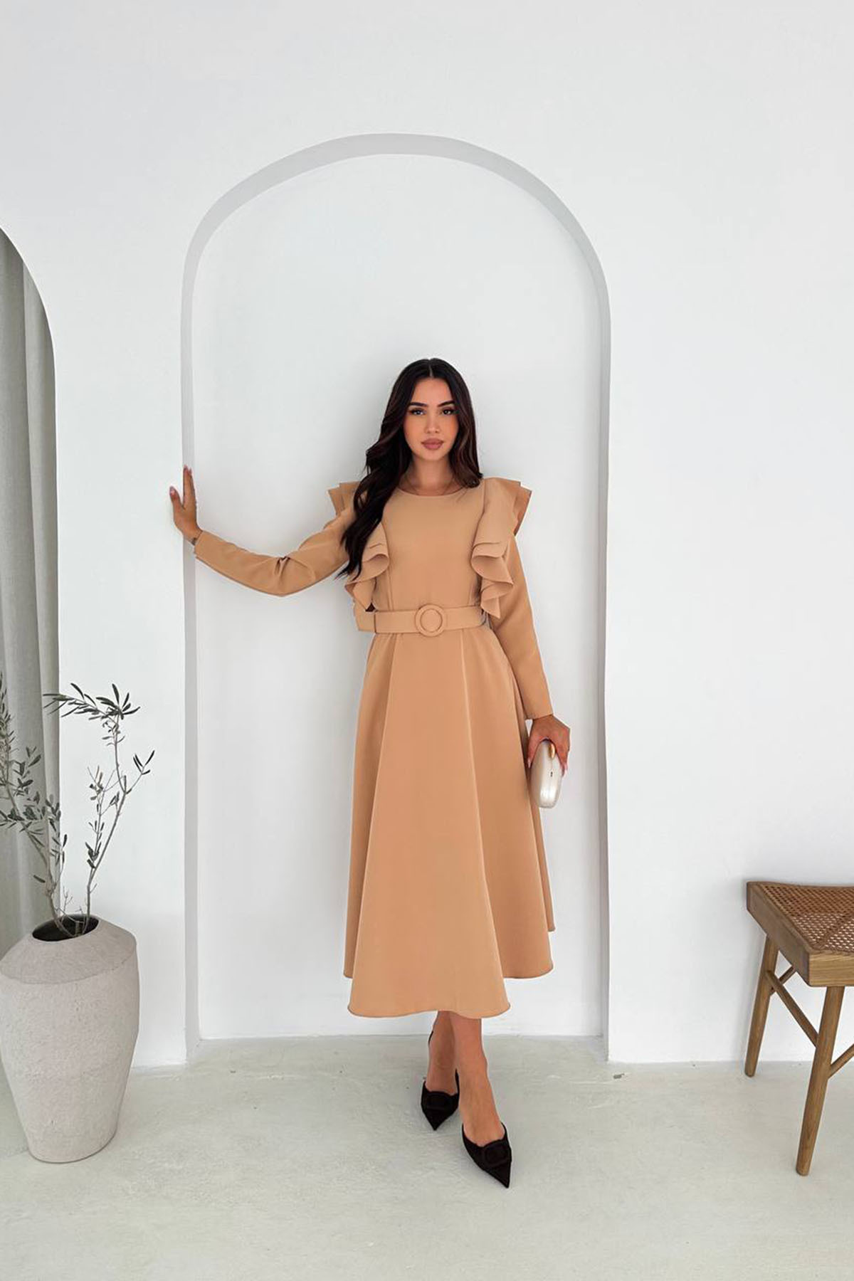 kadın kol fırfırlı kemerli midi boy elbise NBK4309 kadın kol fırfırlı kemerli midi boy elbise NBK4309 42