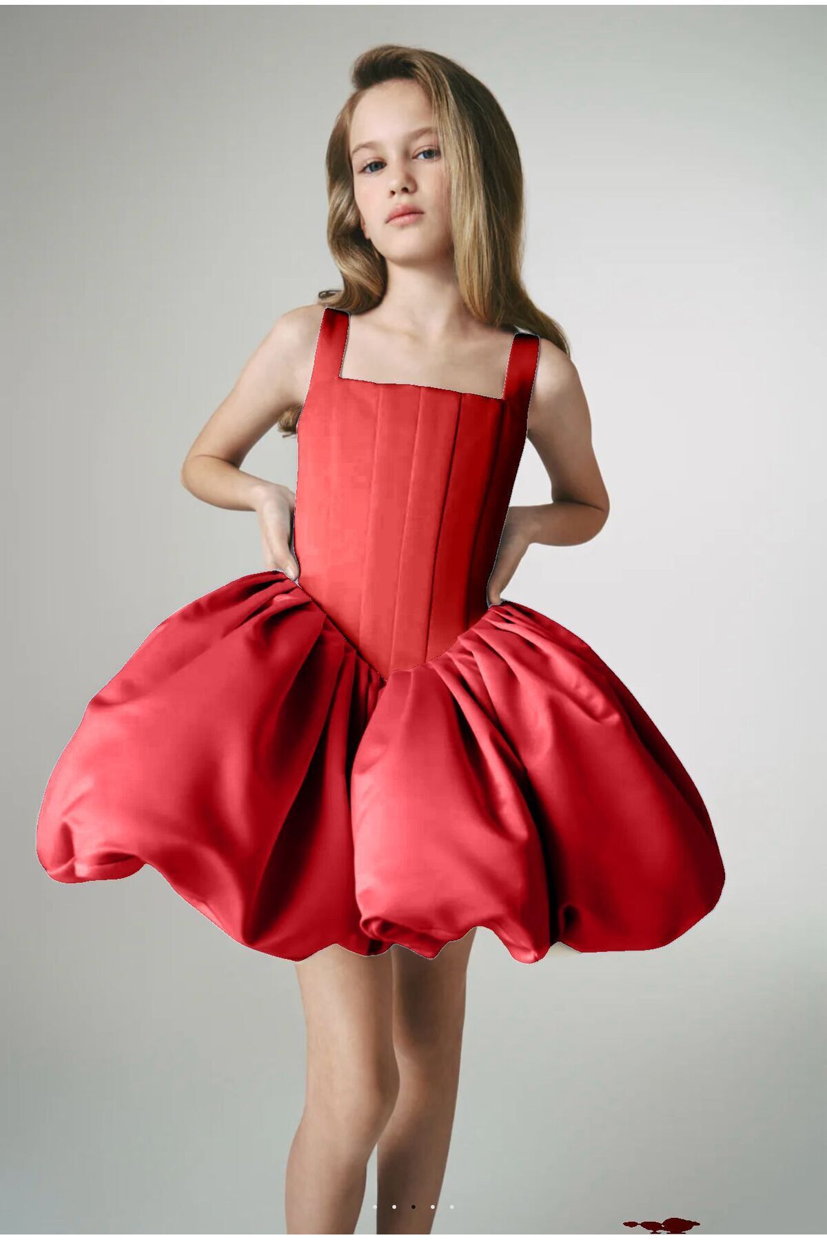 Kız Çocuk Sırtı Fiyonk Detaylı Balon Elbise Kız Çocuk Sırtı Fiyonk Detaylı Balon Elbise KB1302 13-14 Yaş