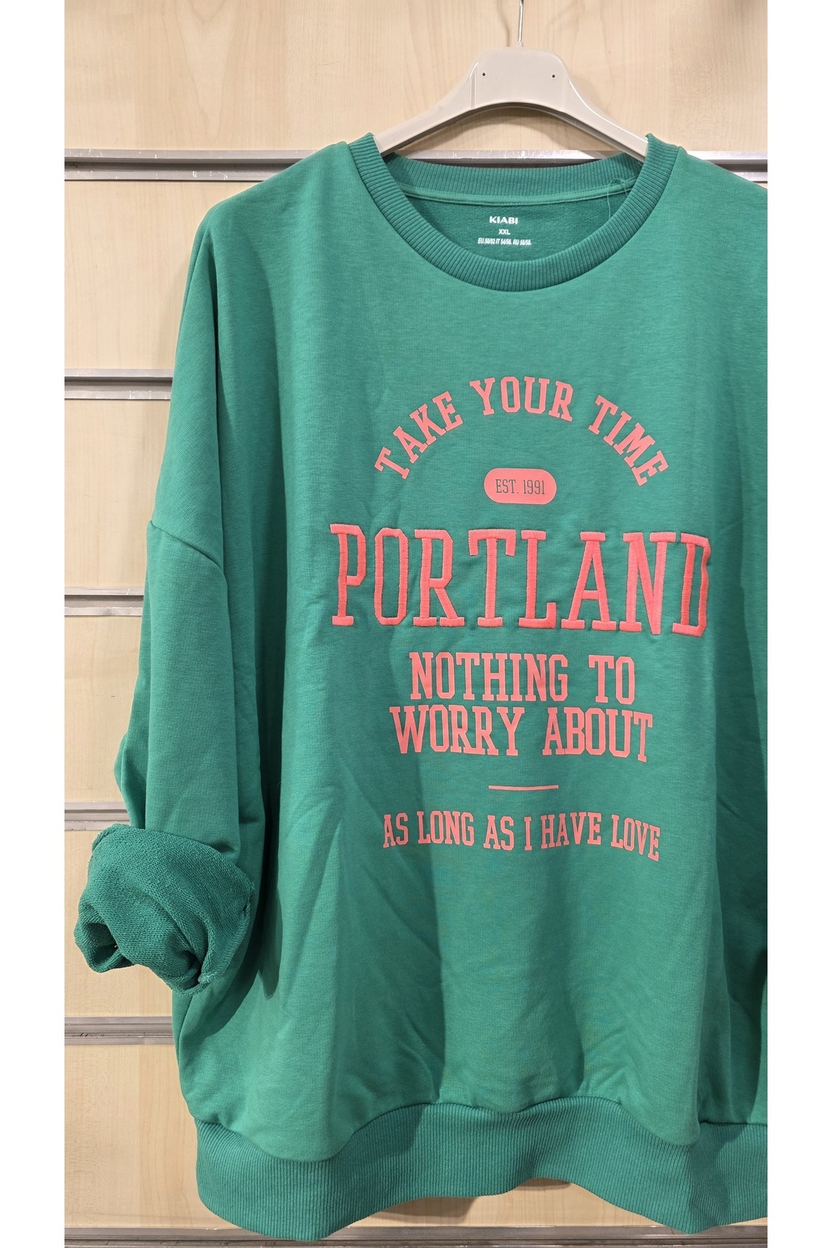 Oversize Kesim Geniş Beden Kadın Sweatshirt Oversize Kesim Geniş Beden Kadın Sweatshirt KB Yeşil Kadın Sweatshirt 58-60