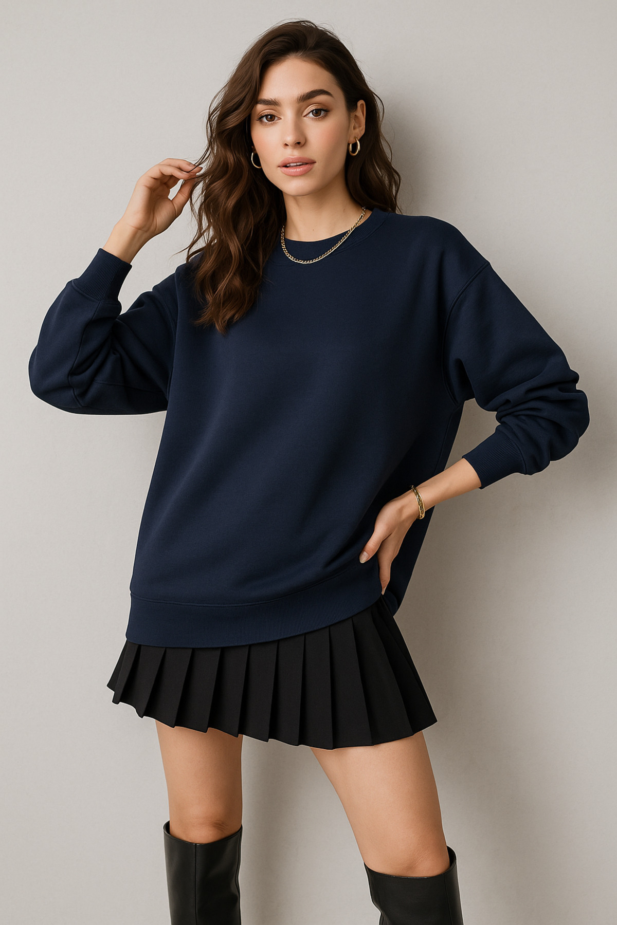 Kadın Lacivert Bisiklet Yaka Oversize Sweatshirt Kadın Lacivert Bisiklet Yaka Oversize Sweatshirt RUSWT 2XL