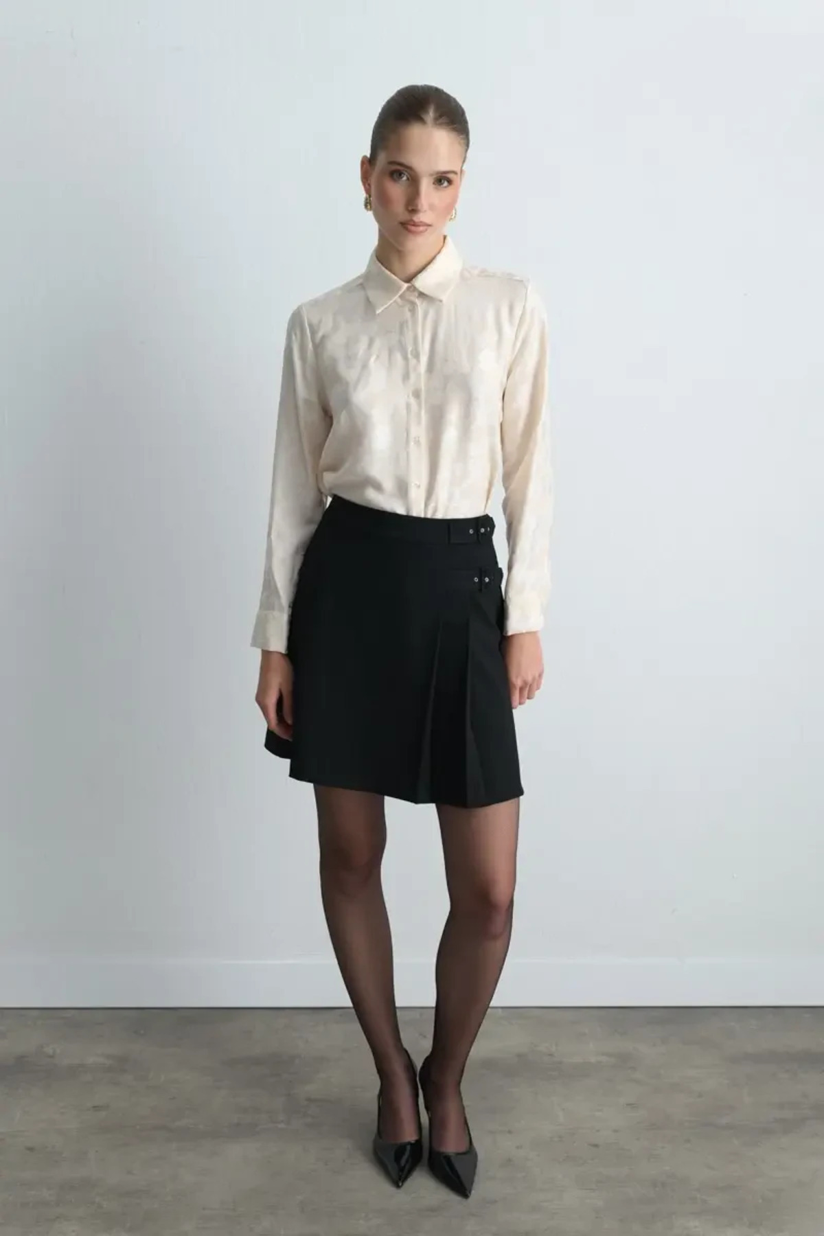 Tokalı Mini Etek - Siyah Tokalı Mini Etek - Siyah 26KG003214 XL