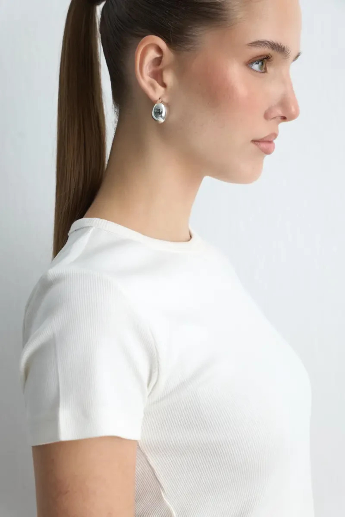 Kısa Kollu Basic Pamuk Tshirt - Ekru Kısa Kollu Basic Pamuk Tshirt - Ekru 26KGN009 3
