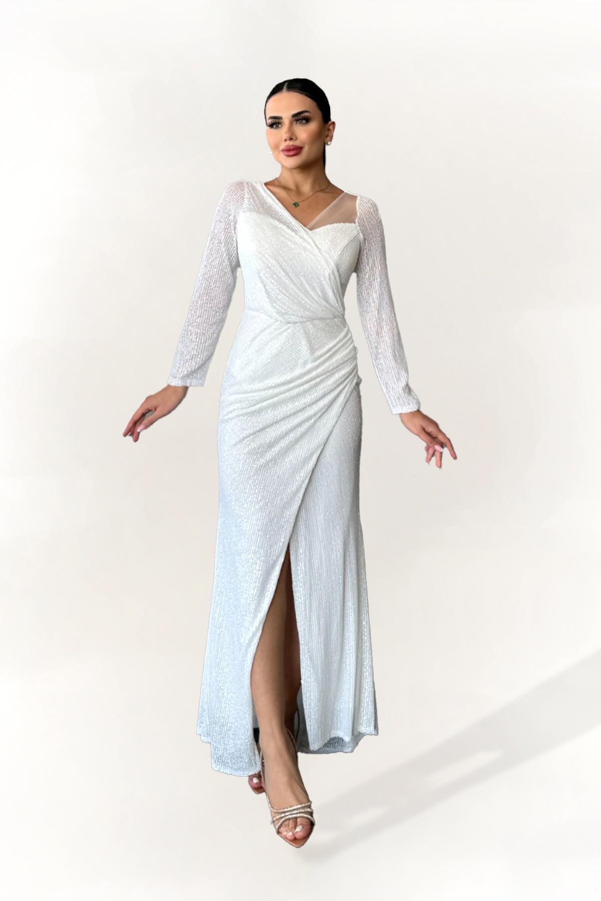 Payetli Uzun Dar Kesim Abiye Elbise Ekru Payetli Uzun Dar Kesim Abiye Elbise Ekru 1563 42