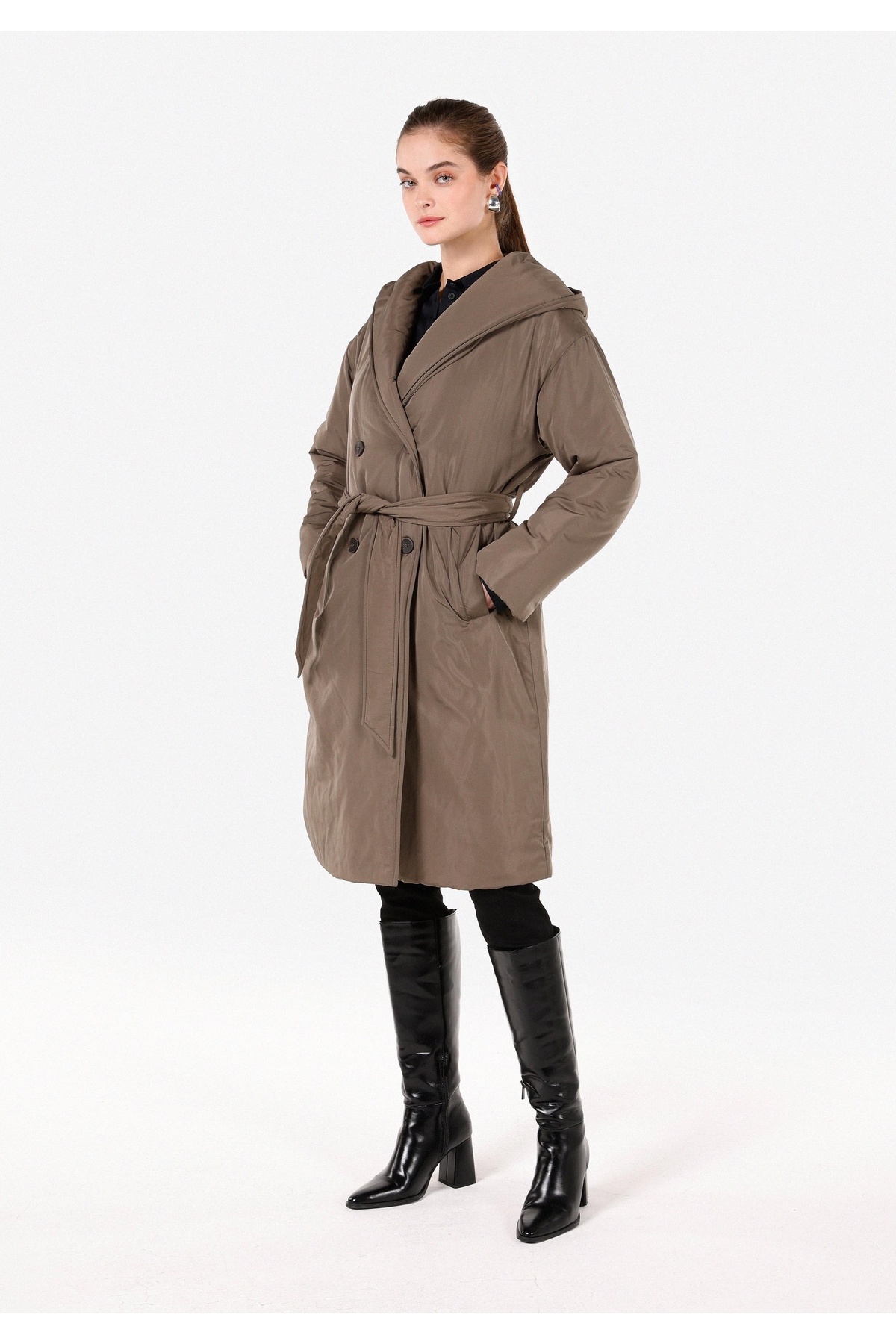 Regular Fit Kapüşonlu Düğmeli Astarlı Suya Dayanıklı Kadın Gri Kaban Regular Fit Kapüşonlu Düğmeli Astarlı Suya Dayanıklı Kadın Gri Kaban CL1075681_Q1.V1 L