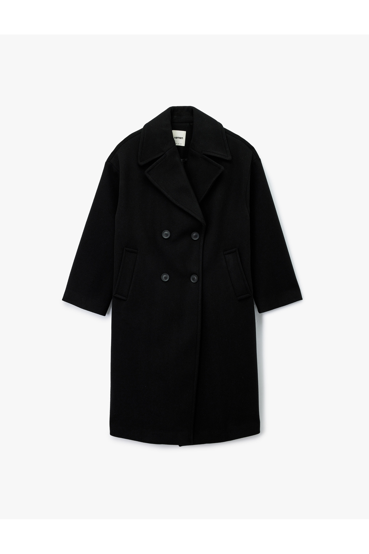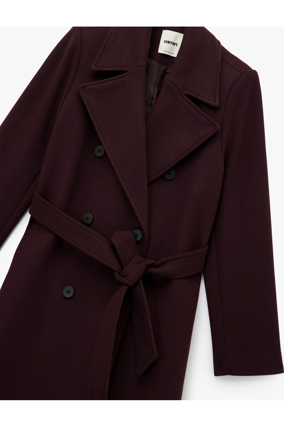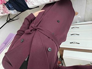 Uzun Kollu Cepli Kruvaze Kemerli Uzun Kaşe Kaban Uzun Kollu Cepli Kruvaze Kemerli Uzun Kaşe Kaban 6WAK00006UW 44