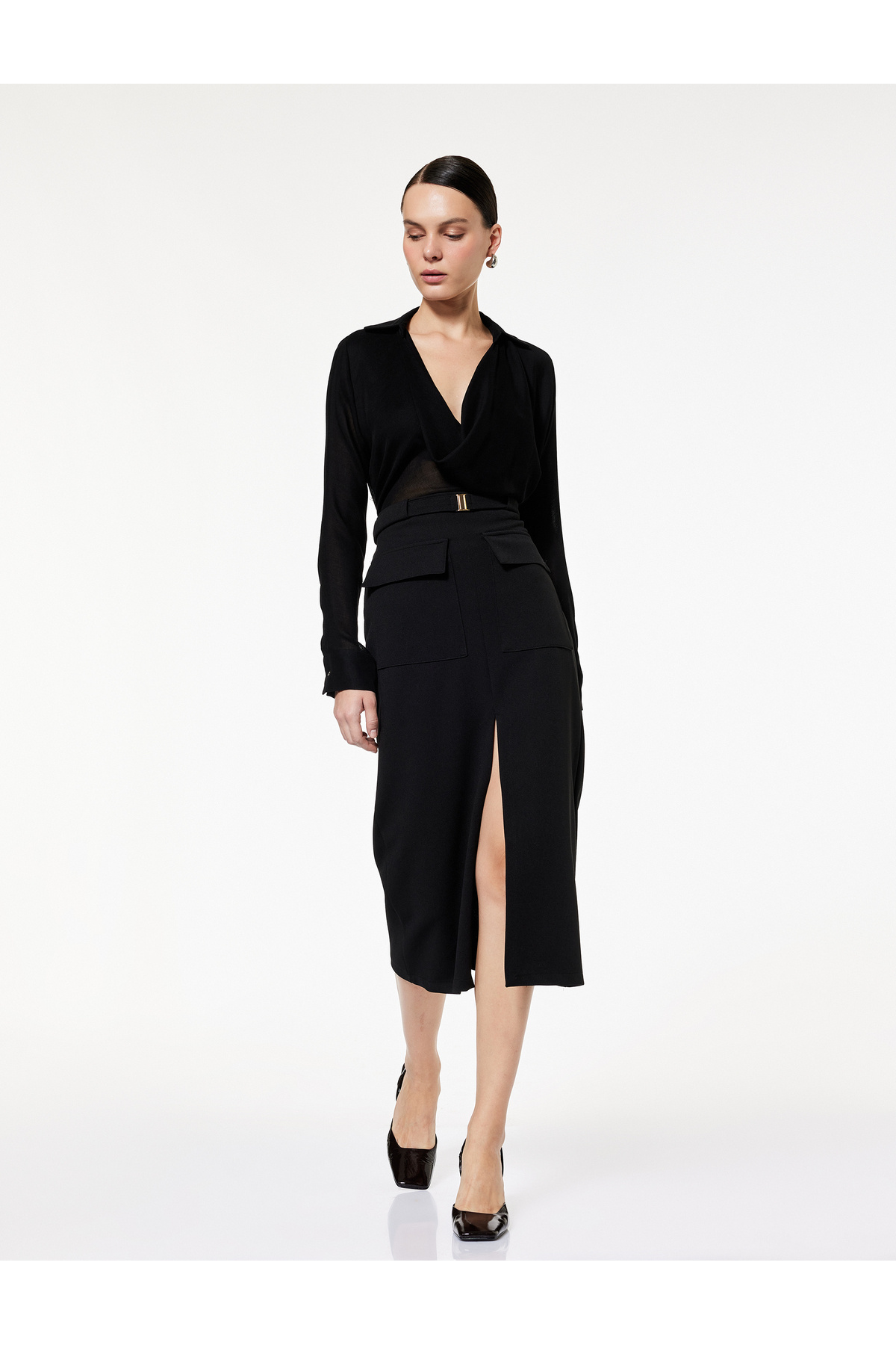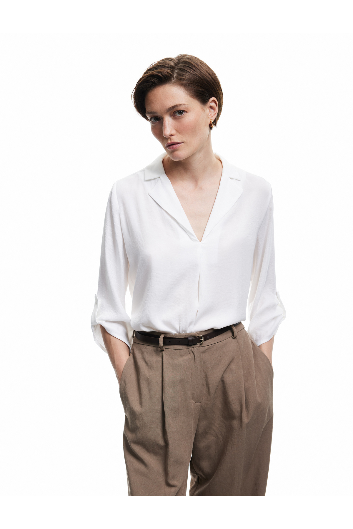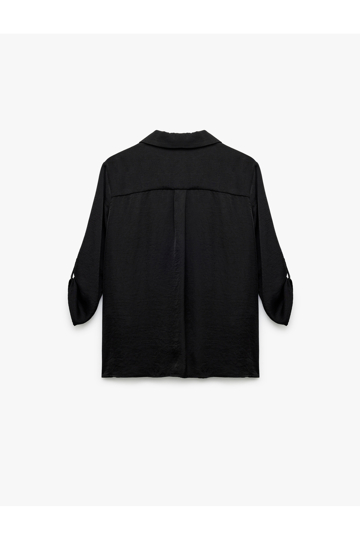Ceket Yaka Katlama Detaylı 3/4 Kollu Saten Bluz Ceket Yaka Katlama Detaylı 3/4 Kollu Saten Bluz 6WAK60004PW 44