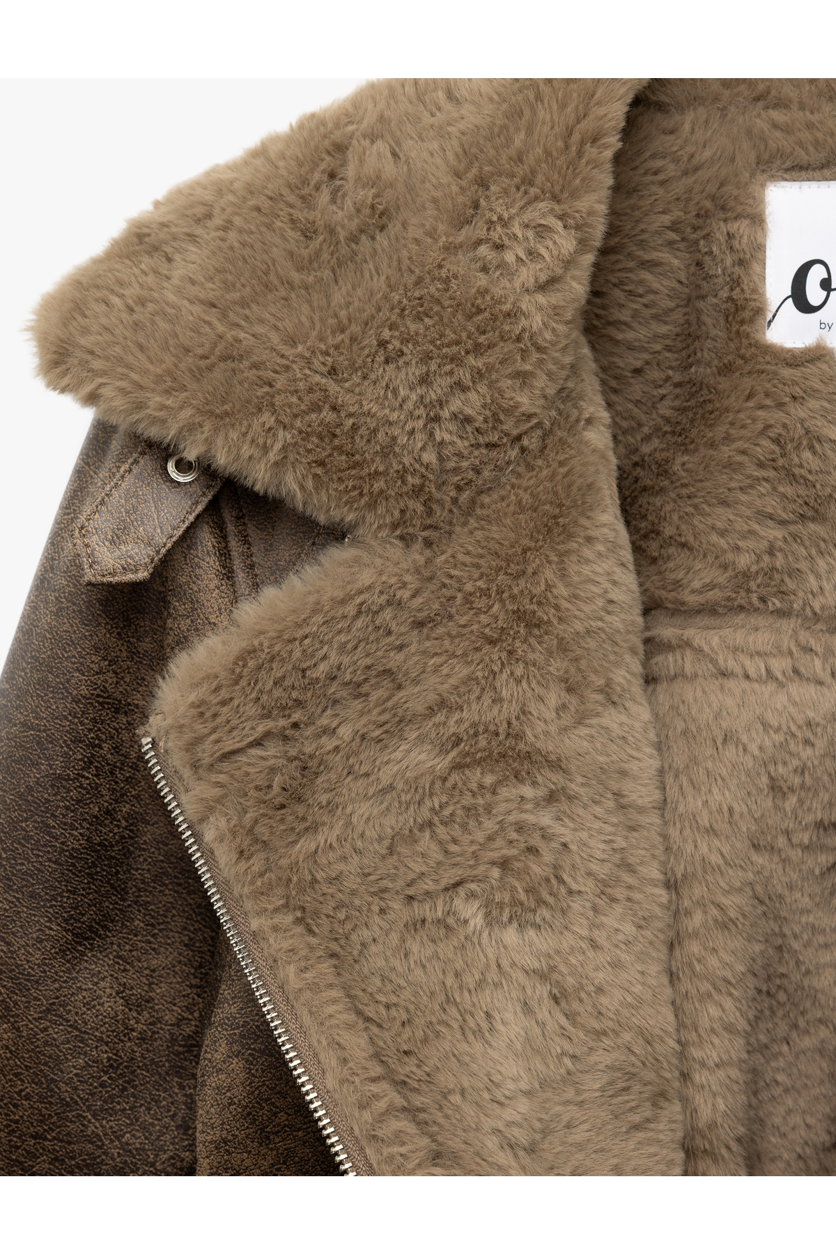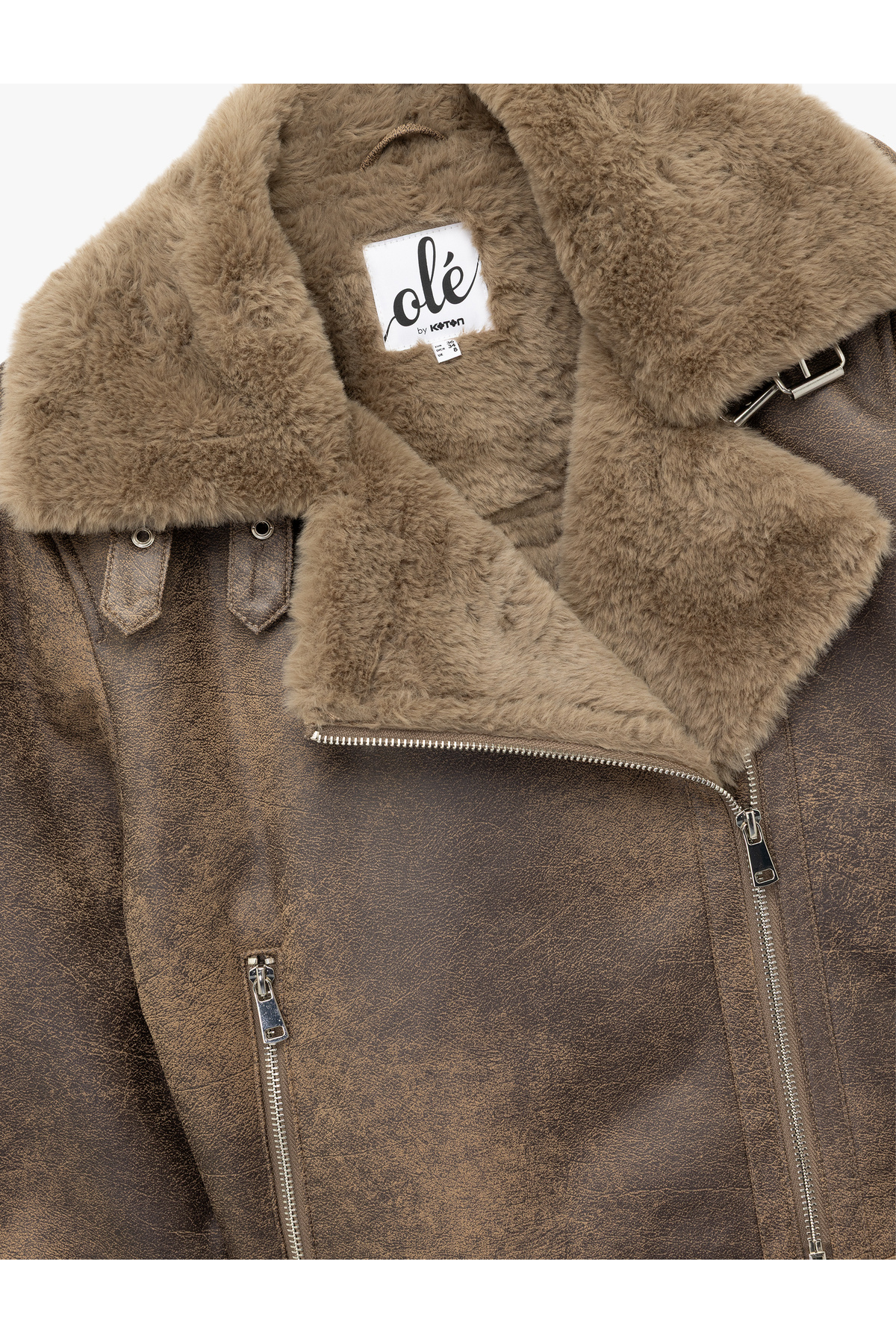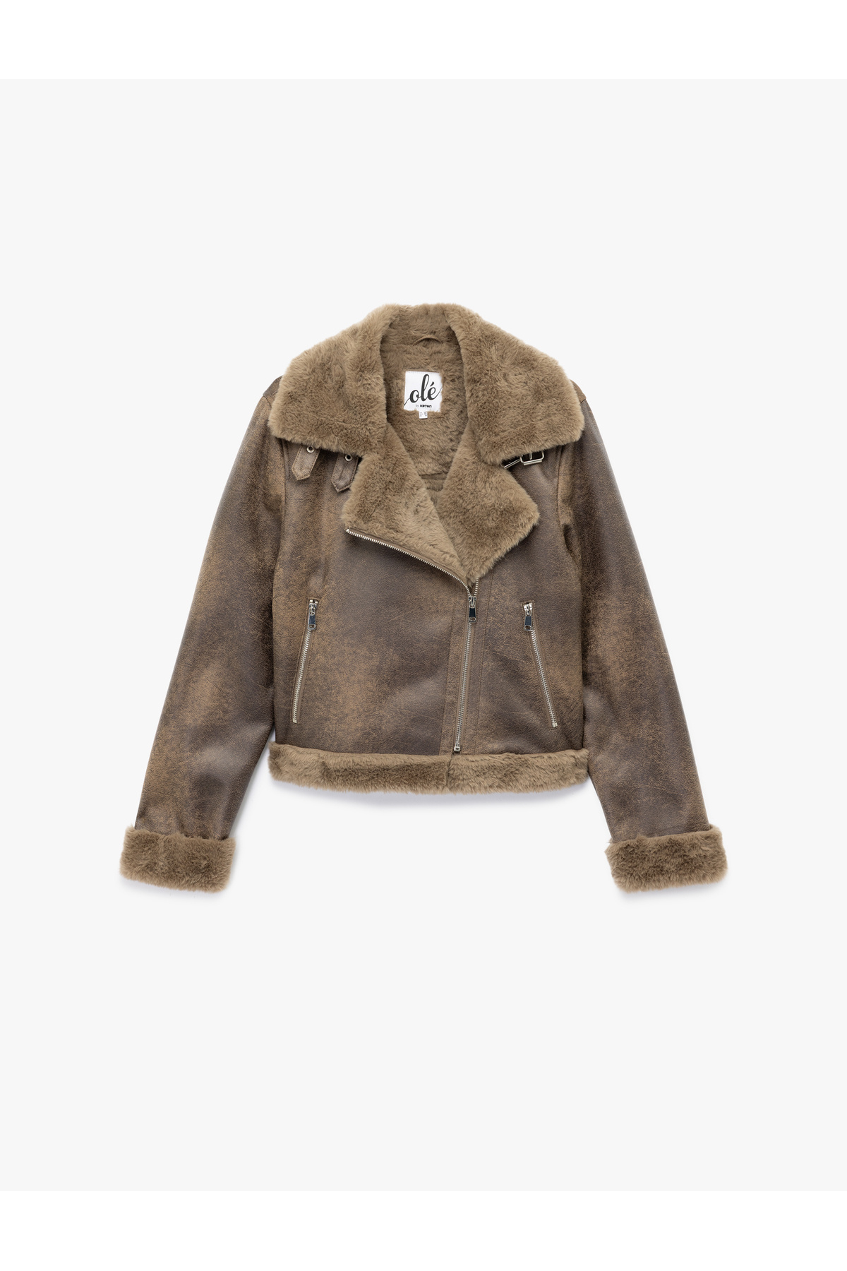 Uzun Kollu Deri Görünümlü Suni Kürk Yaka Biker Ceket Uzun Kollu Deri Görünümlü Suni Kürk Yaka Biker Ceket 6WAL20005IW 40
