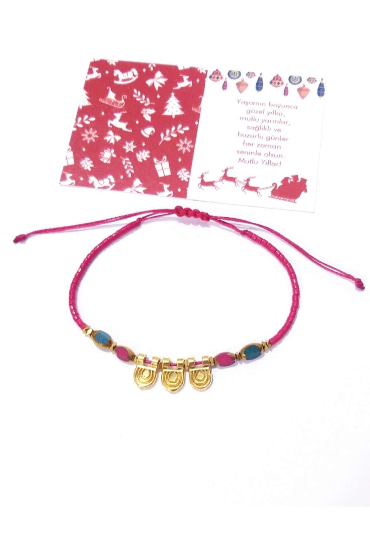 Yılbaşı Kartlı Fimo Çiçekli Çek Cam Ve Fimo Boncuklu Bileklik Yılbaşı Kartlı Fimo Çiçekli Çek Cam Ve Fimo Boncuklu Bileklik FNYFIMCICEKYILBASBLK 17 cm