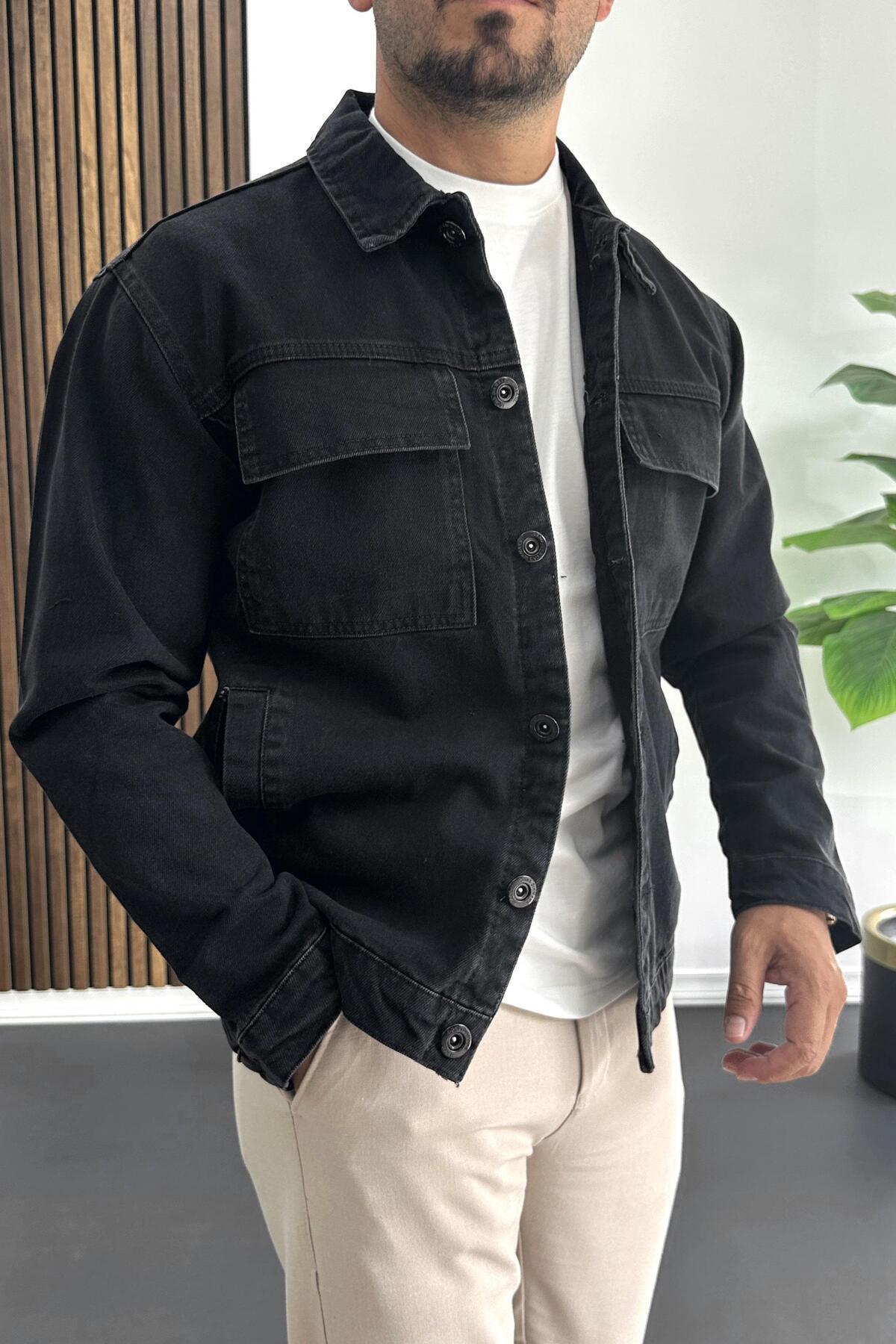 Erkek Slim Fit Kot Ceket Siyah Edw414 Erkek Slim Fit Kot Ceket Siyah Edw414 EDW00TX414 2XL
