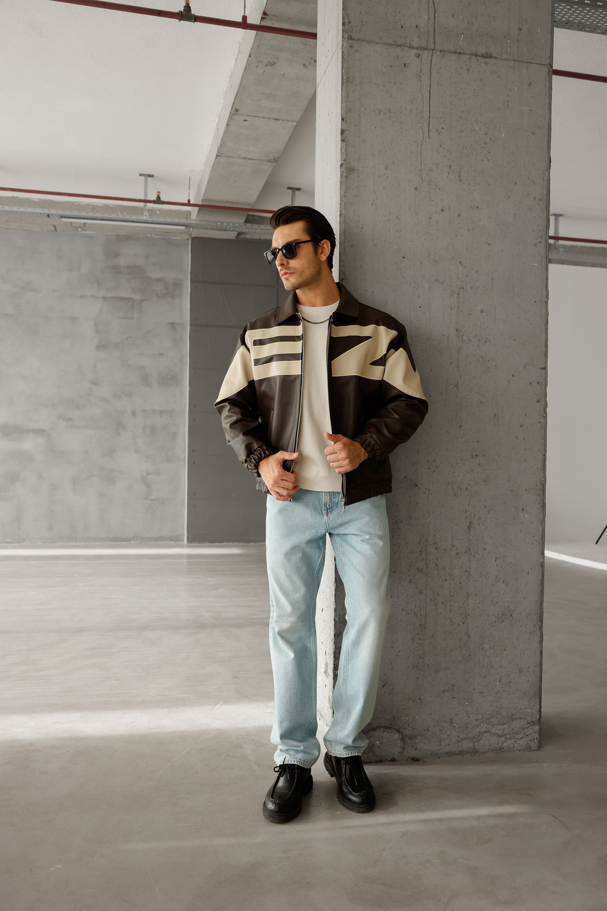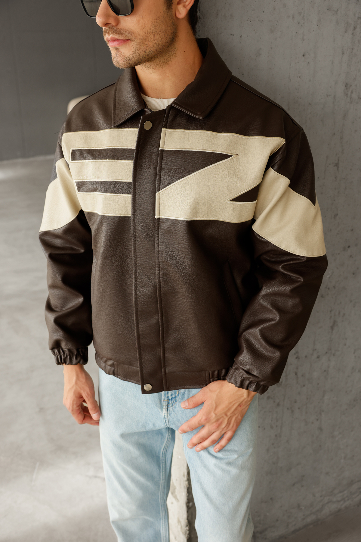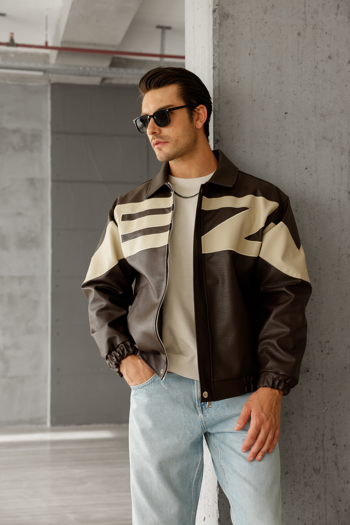 Oversize Bomber İçi Kürklü Deri Ceket Oversize Bomber İçi Kürklü Deri Ceket 940 XL