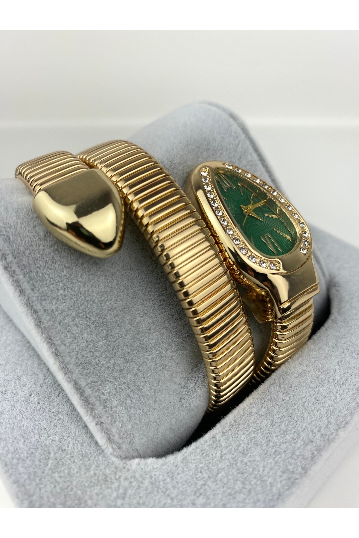 Vintage Yılan Model Gold İçi Yeşil Kadın Kol Saati Vintage Yılan Model Gold İçi Yeşil Kadın Kol Saati MB0110 تک سایز