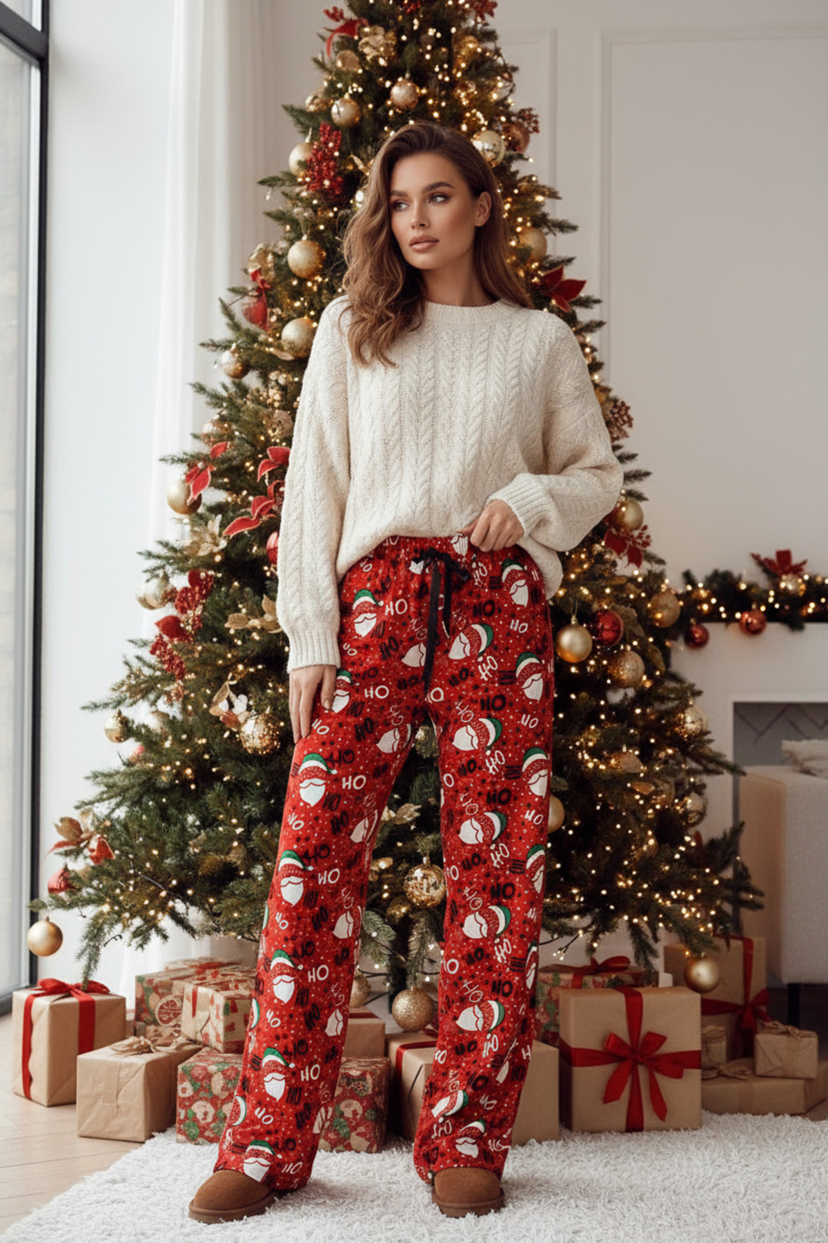 Yılbaşı Temalı Süet Kumaş Geniş Paçalı Pantolon Yılbaşı Temalı Süet Kumaş Geniş Paçalı Pantolon EBNOEL001 Standart