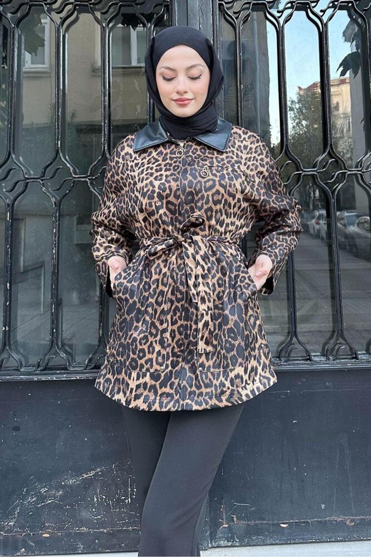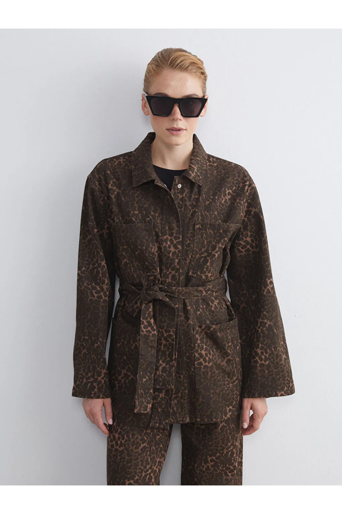 Gömlek Yaka Leopar Desenli Kadın Jean Ceket Gömlek Yaka Leopar Desenli Kadın Jean Ceket 4856763 46