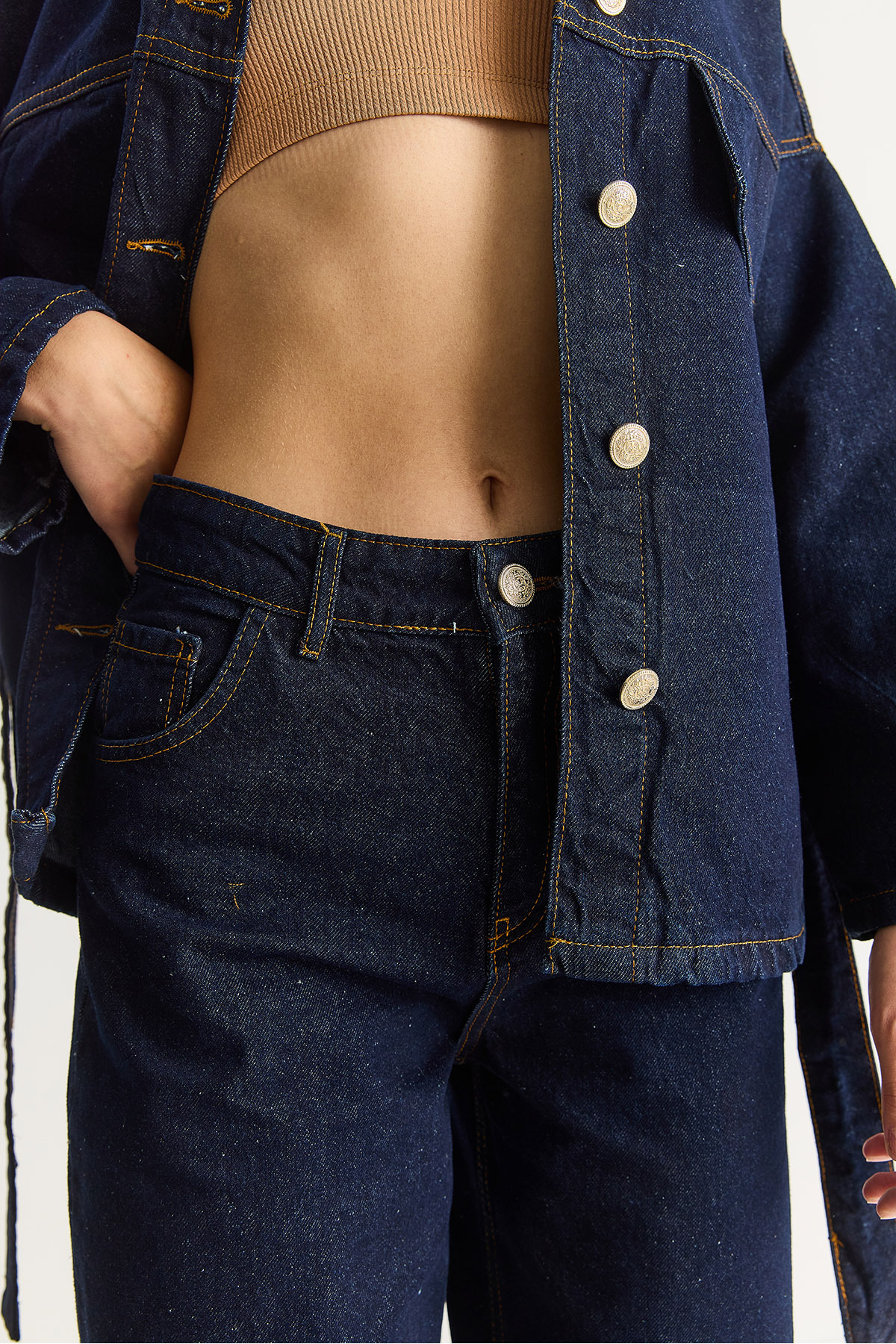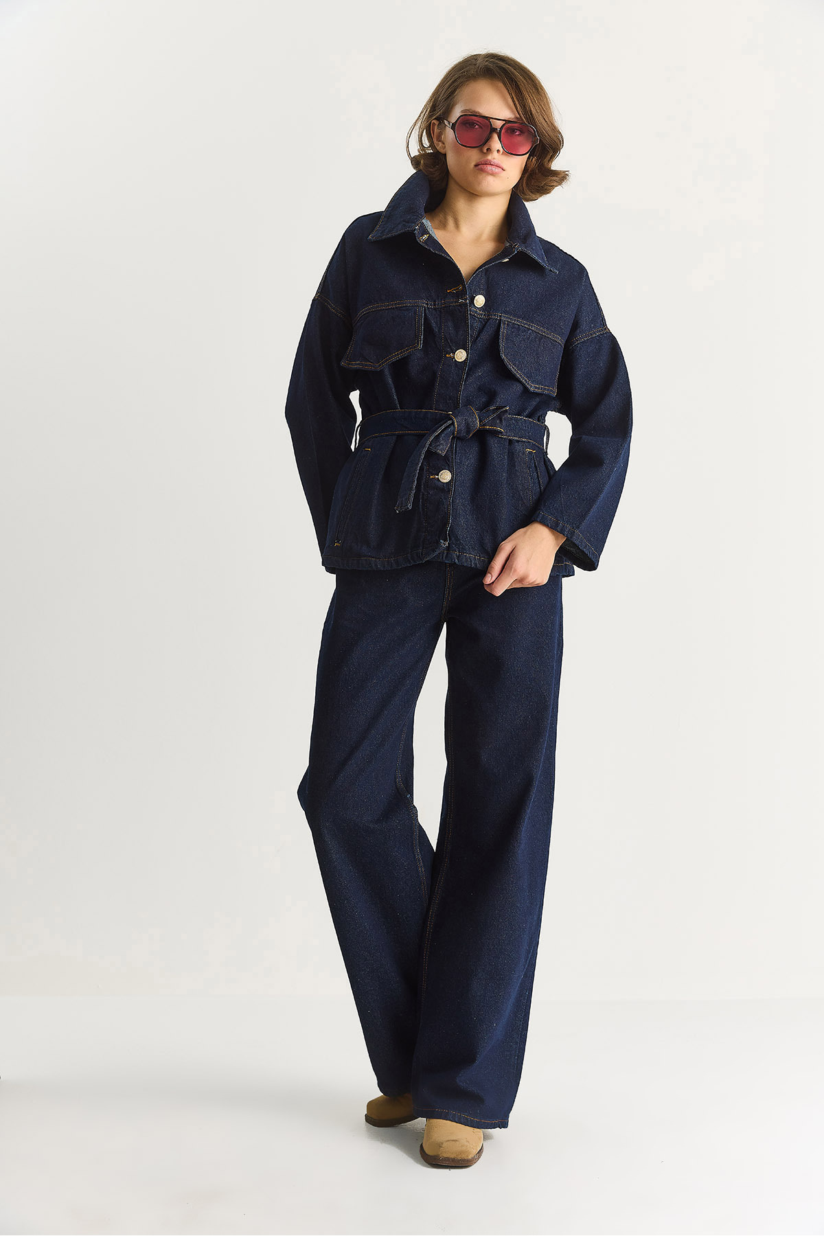 Kadın Cep Detaylı Kuşaklı Ceket Wide Leg Pantolon Premium Denim Takım 6064 60283549 Kadın Cep Detaylı Kuşaklı Ceket Wide Leg Pantolon Premium Denim Takım 6064 60283549 40