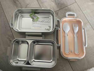 Aura Çift Katlı Beslenme Kabı (450 ml + 400 ml) Paslanmaz Çelik Yemek Saklama Kabı Aura Çift Katlı Beslenme Kabı (450 ml + 400 ml) Paslanmaz Çelik Yemek Saklama Kabı AP-9524 تک سایز