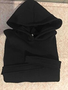 Kadın Kapüşonlu Özel Tasarım Kuşaklı Siyah Sweatshirt Kadın Kapüşonlu Özel Tasarım Kuşaklı Siyah Sweatshirt B.s184 XL