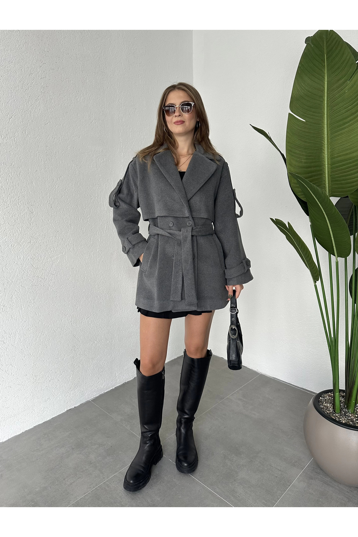 Kadın Krem Kruvaze Oversize Astarlı Cepli Kuşaklı Kaşe Mont Kaban Kadın Krem Kruvaze Oversize Astarlı Cepli Kuşaklı Kaşe Mont Kaban U321 L