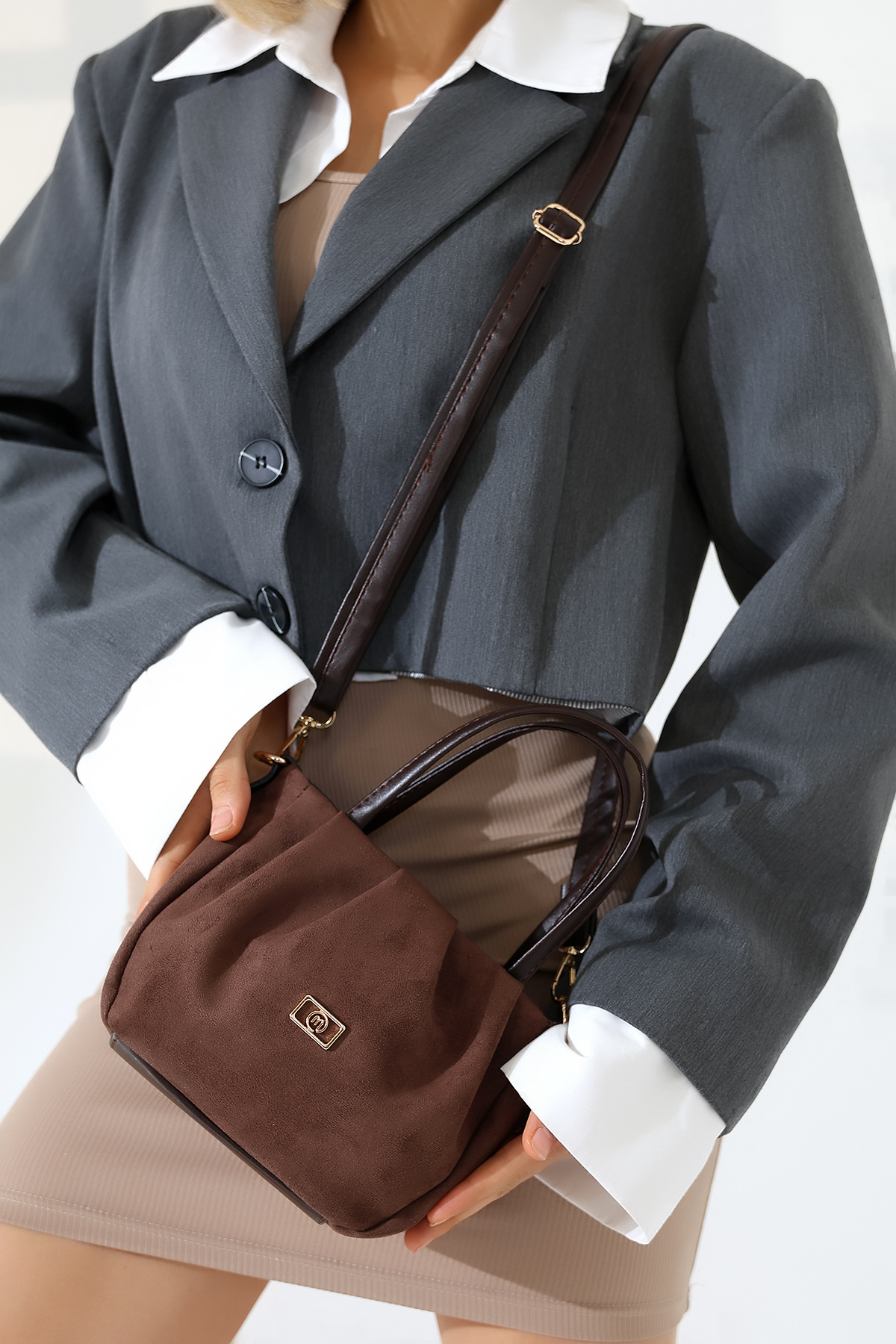 Kahverengi Kadın Nubuk Çanta Astarlı Fermuarlı - Çapraz Askılı Omuz ve El Çantası Küçük Boy Kahverengi Kadın Nubuk Çanta Astarlı Fermuarlı - Çapraz Askılı Omuz ve El Çantası Küçük Boy BLZ-NUBUK Standart