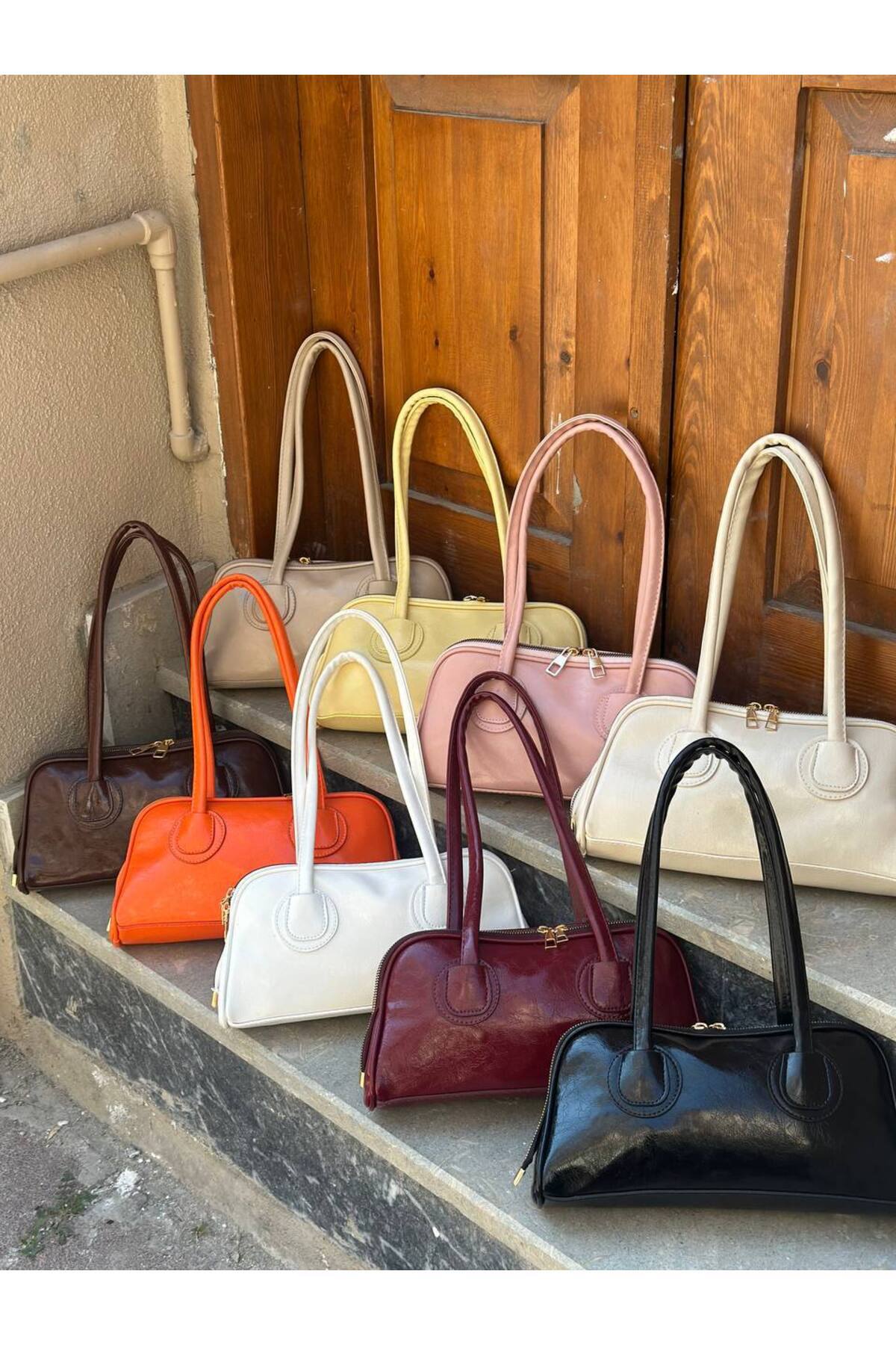 Kahverengi Çift Saplı Baget Model Parlak Kadın Omuz Çantası Kahverengi Çift Saplı Baget Model Parlak Kadın Omuz Çantası SHKRT-344 Standart