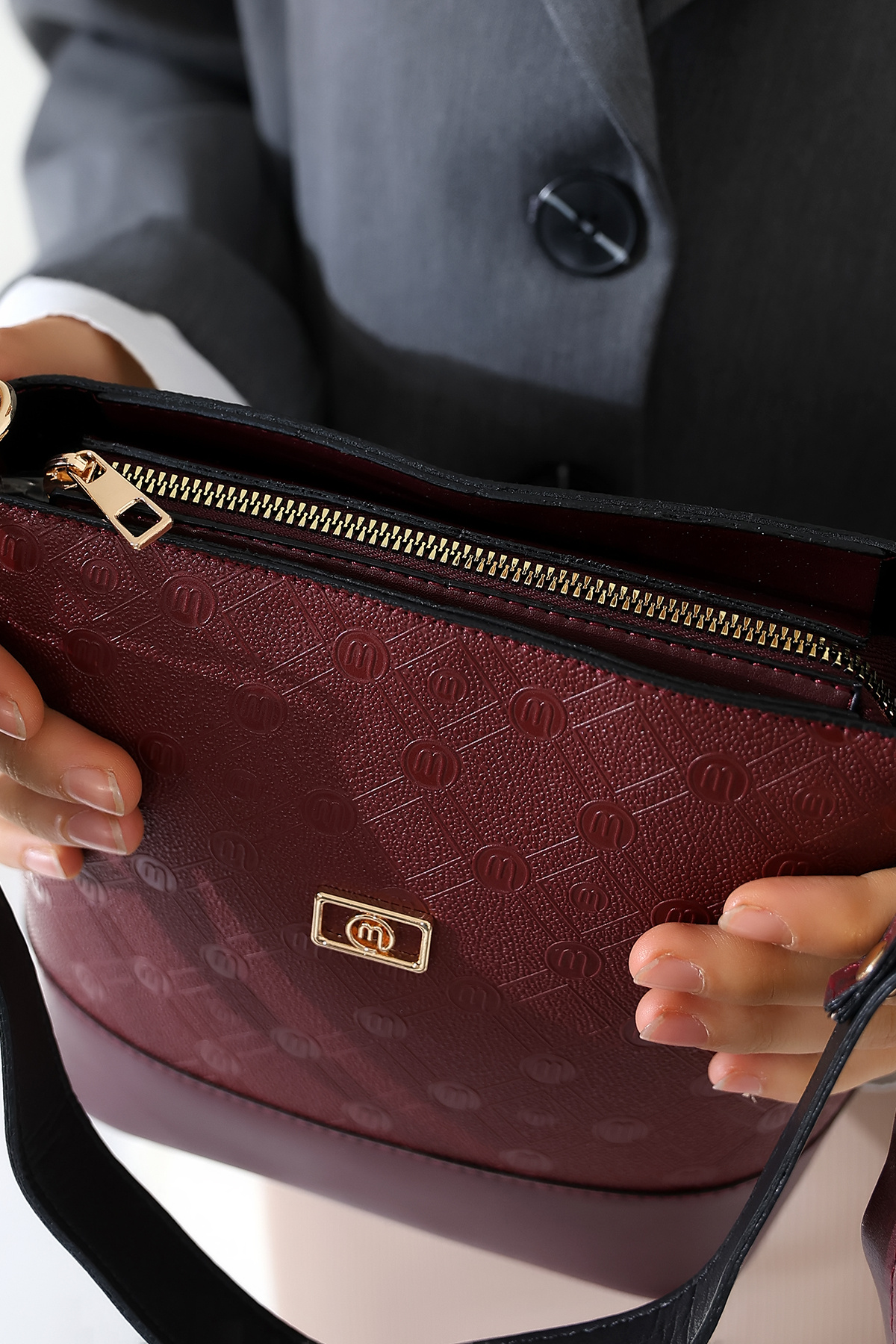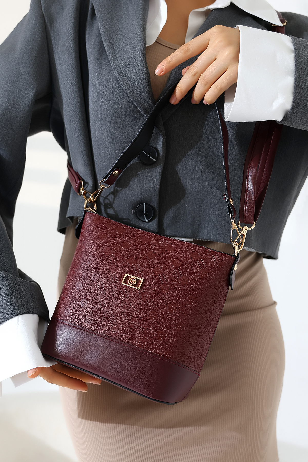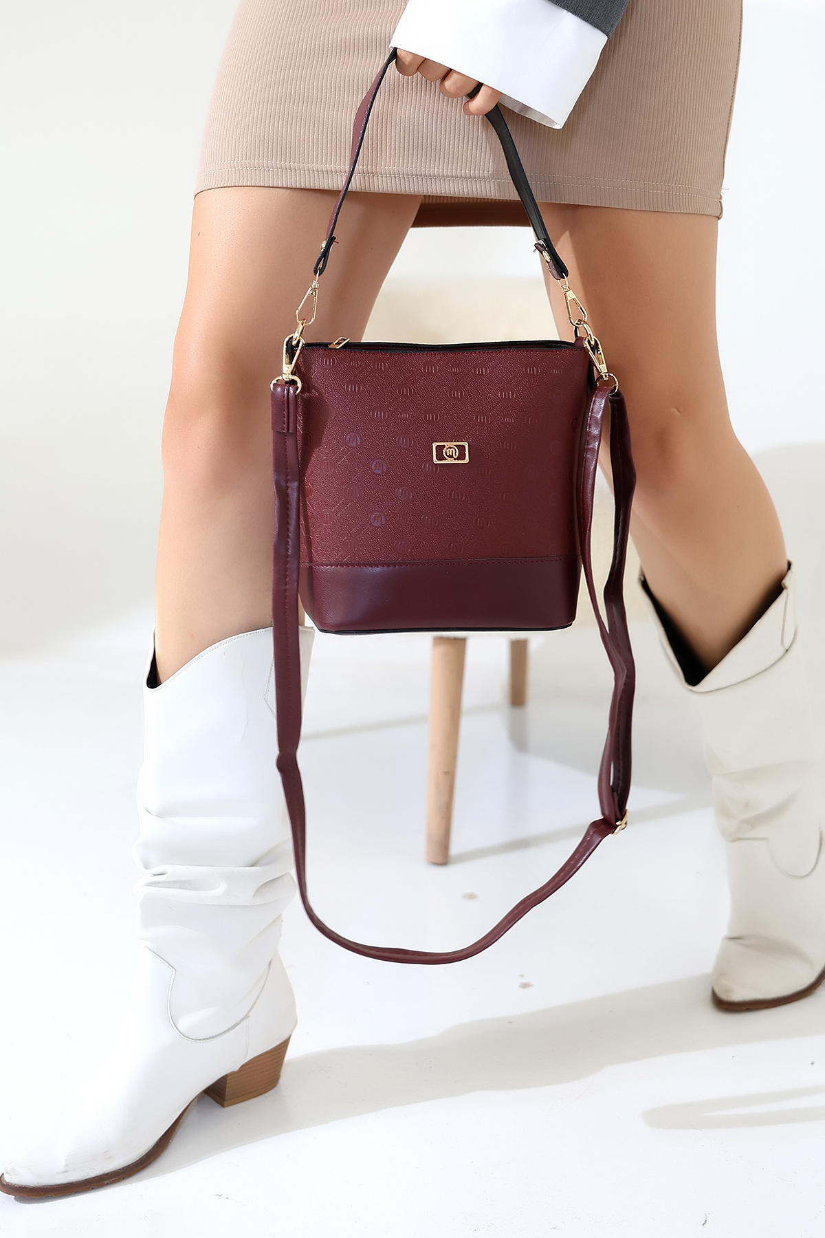 Bordo Kadın Çanta Baskılı Kova Model Tek Gözlü Çapraz Askılı Omuz ve El Çantası Bordo Kadın Çanta Baskılı Kova Model Tek Gözlü Çapraz Askılı Omuz ve El Çantası BLZKOVA01 Standart