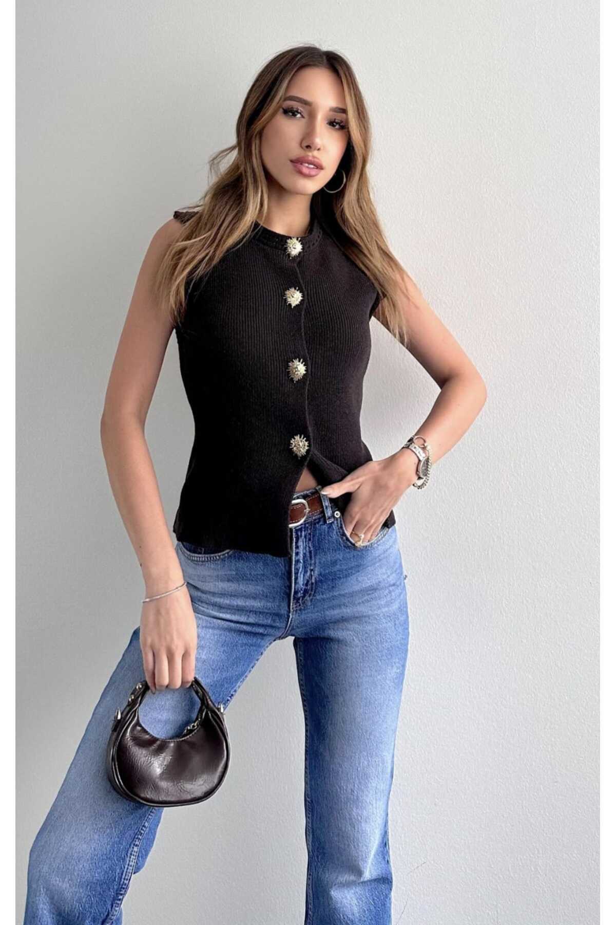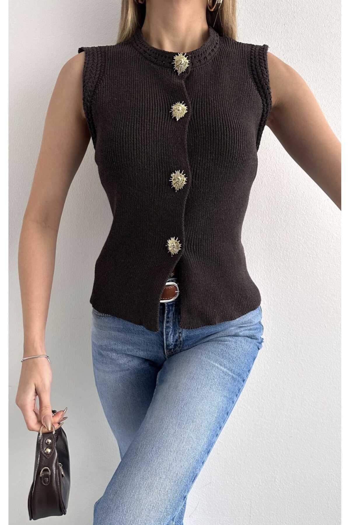 Gold Düğmeli Trend Çıtçıtlı Triko Yelek Gold Düğmeli Trend Çıtçıtlı Triko Yelek 24888 Standart