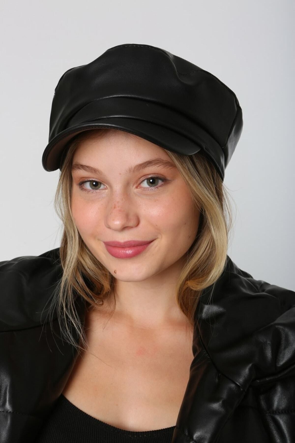 Şık Ve Modern Sentetik Deri Siyah Şapka - Geniş Siperlikli Ve Dikiş Detaylı Tasarım Spk1127 Şık Ve Modern Sentetik Deri Siyah Şapka - Geniş Siperlikli Ve Dikiş Detaylı Tasarım Spk1127 SPKDERİ1 Standart