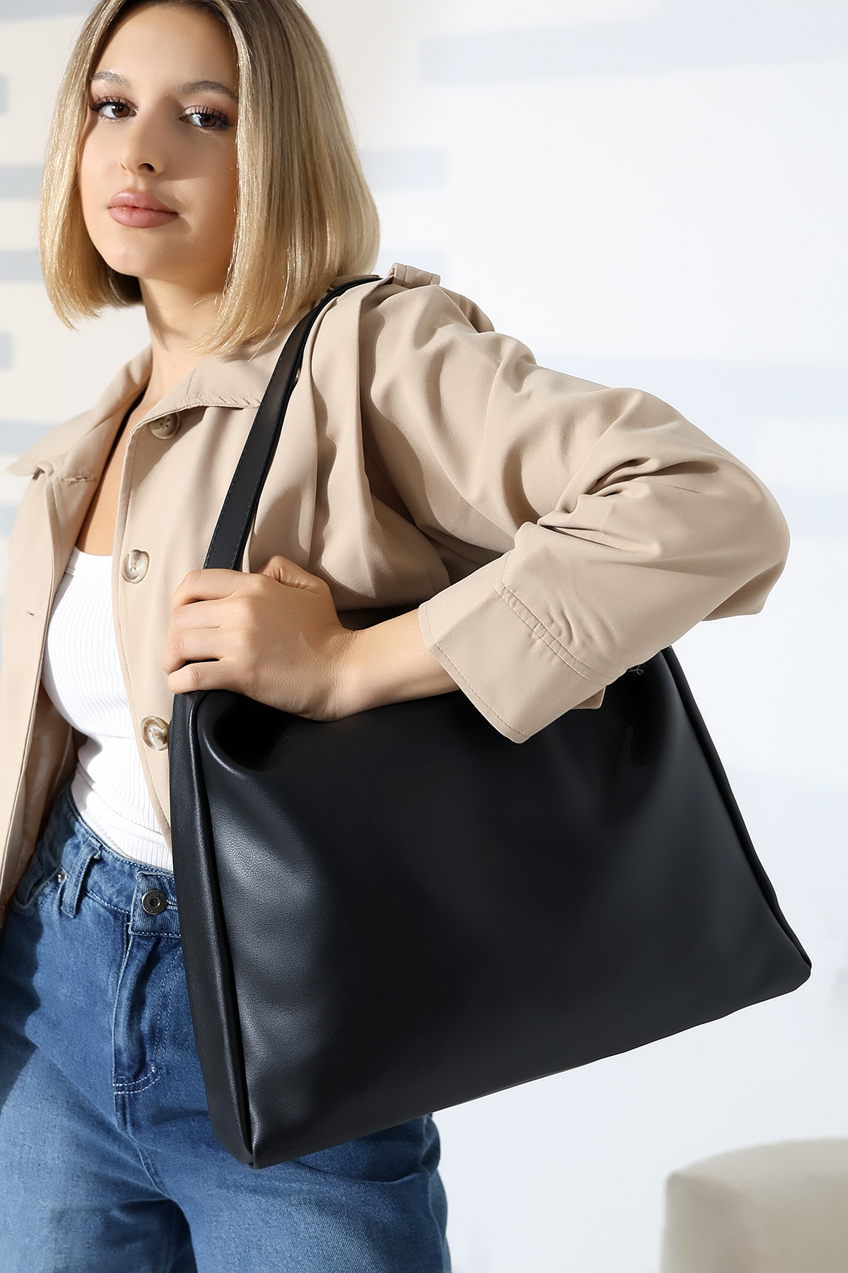 Siyah Kadın Çanta Büyük Boy Fermuarlı Omuz ve El Çantası Siyah Kadın Çanta Büyük Boy Fermuarlı Omuz ve El Çantası BLZBUYUK05 Standart