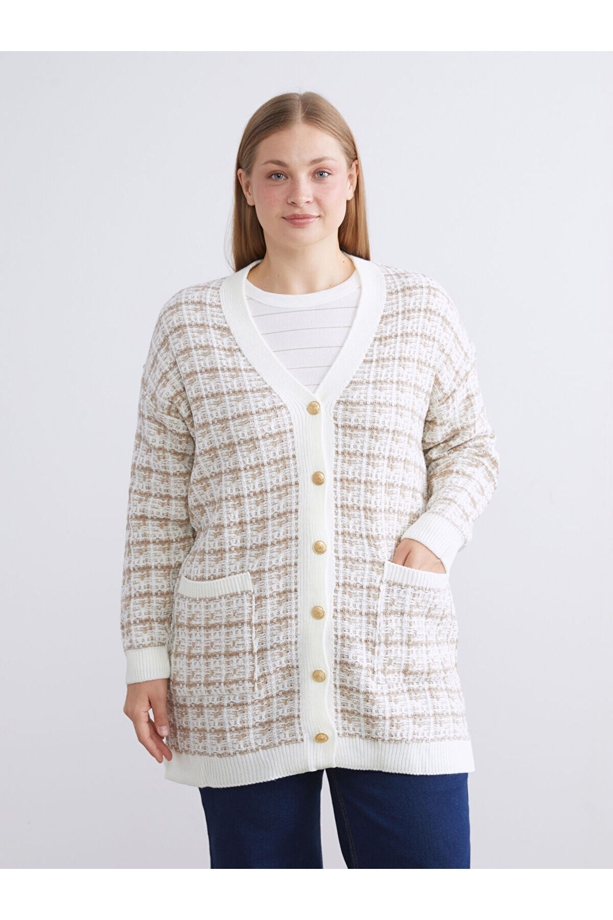 LCWAIKIKI Kadın V Yaka Desenli Triko Hırka LCWAIKIKI Kadın V Yaka Desenli Triko Hırka W5BD62Z8DSF 3XL