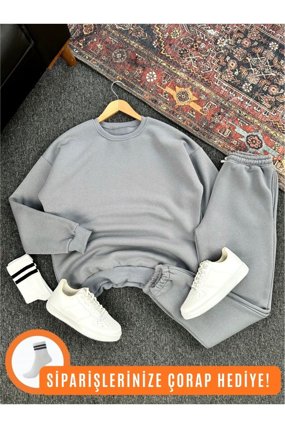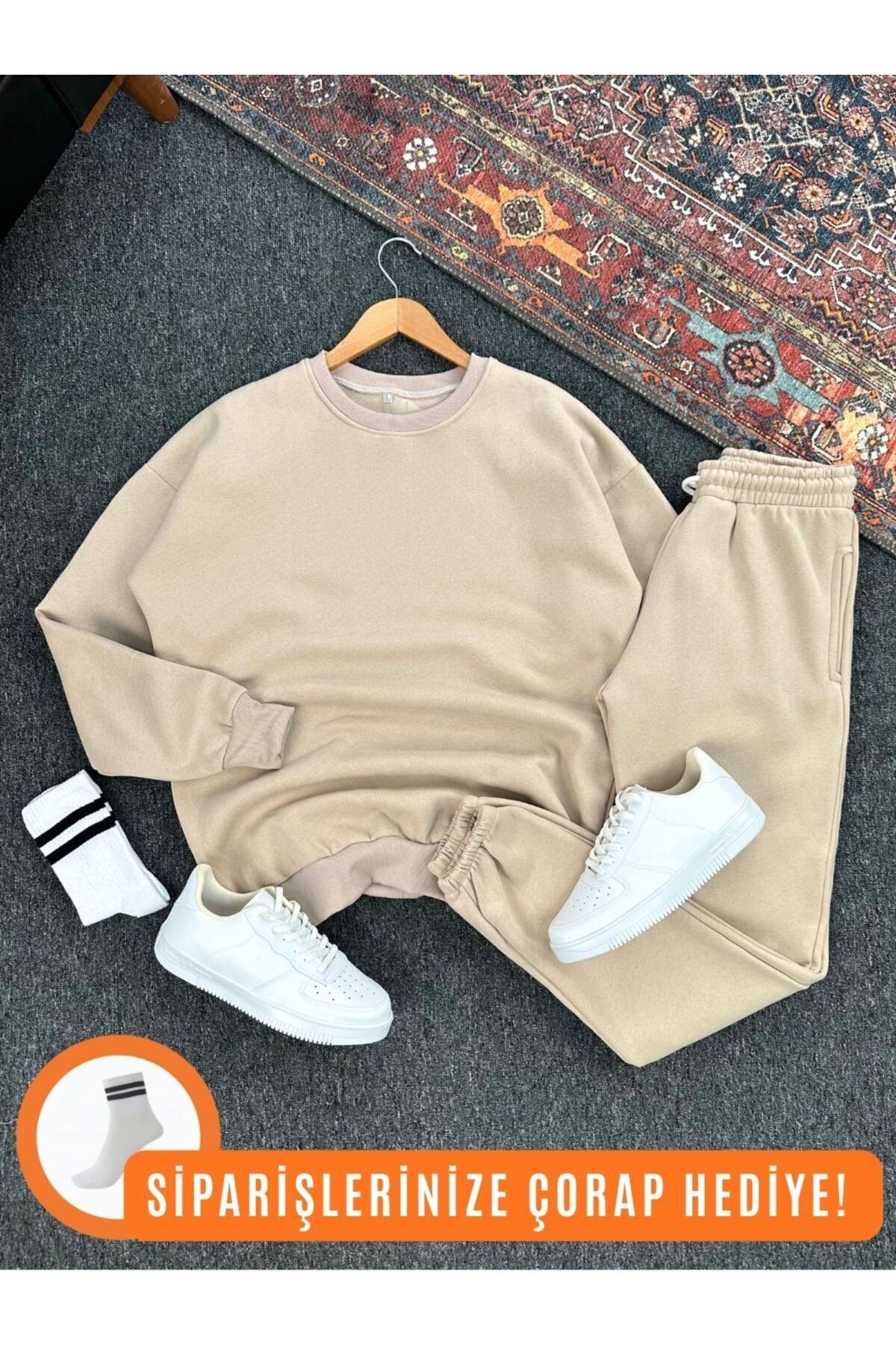 Üç Iplik Kompakt Bisiklet Yaka İçi Pamuklu Premium Oversize Eşofman Takımı Üç Iplik Kompakt Bisiklet Yaka İçi Pamuklu Premium Oversize Eşofman Takımı TM-UIKBYPOET XL