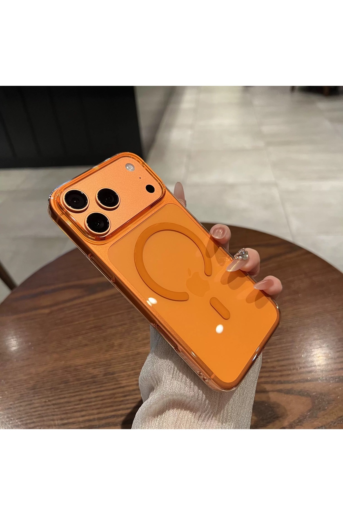 iPhone 17 Pro Uyumlu (Lens Hediyeli) Turuncu Magsafe Standlı Silikon Metal Çerçeve Koruyucu Kılıf iPhone 17 Pro Uyumlu (Lens Hediyeli) Turuncu Magsafe Standlı Silikon Metal Çerçeve Koruyucu Kılıf EdelfuEpro17ProStandlı تک سایز