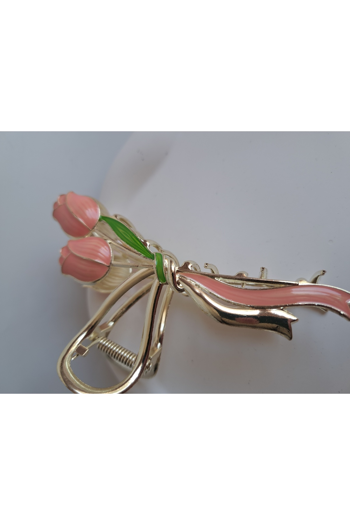 Pembe Lale ve Yeşil Yaprak Tasarımlı Büyük Boy Saç Tokası (10.7 cm) Pembe Lale ve Yeşil Yaprak Tasarımlı Büyük Boy Saç Tokası (10.7 cm) BHRTOKA0001 تک سایز