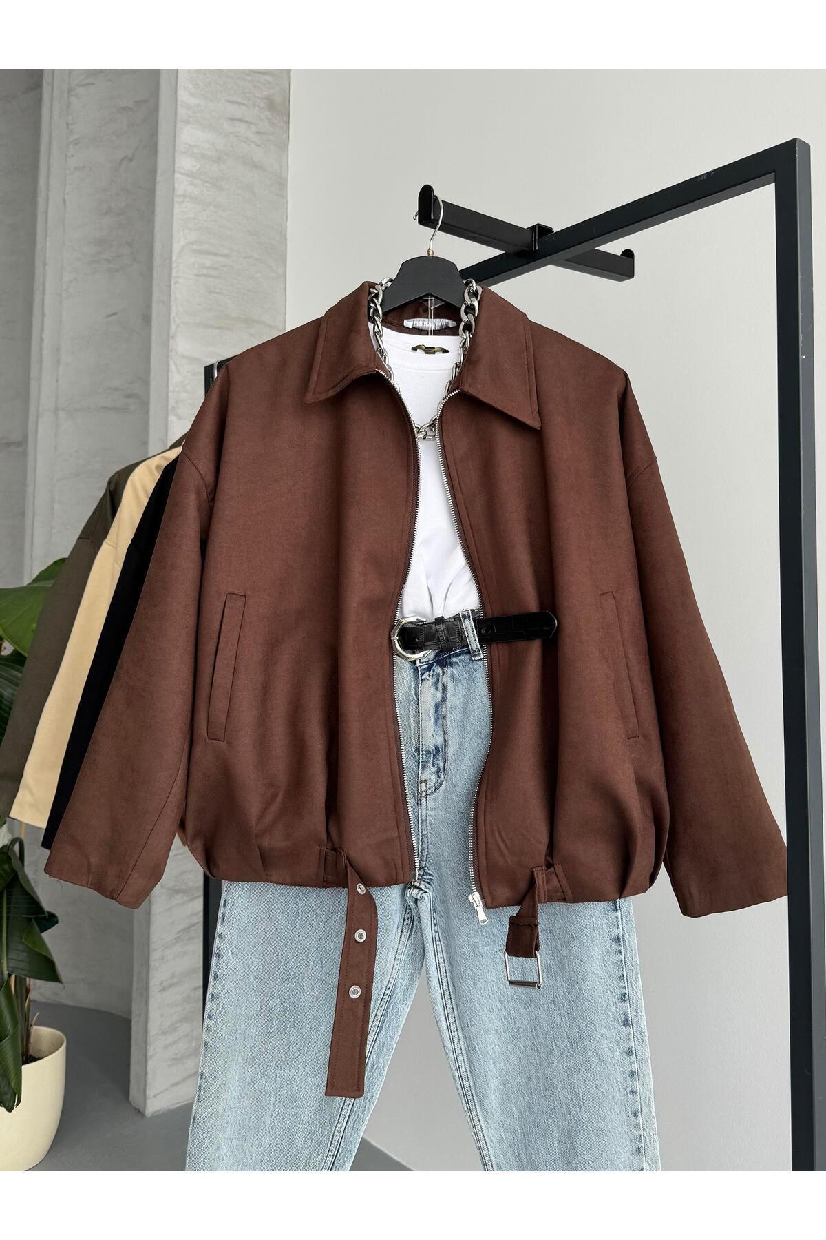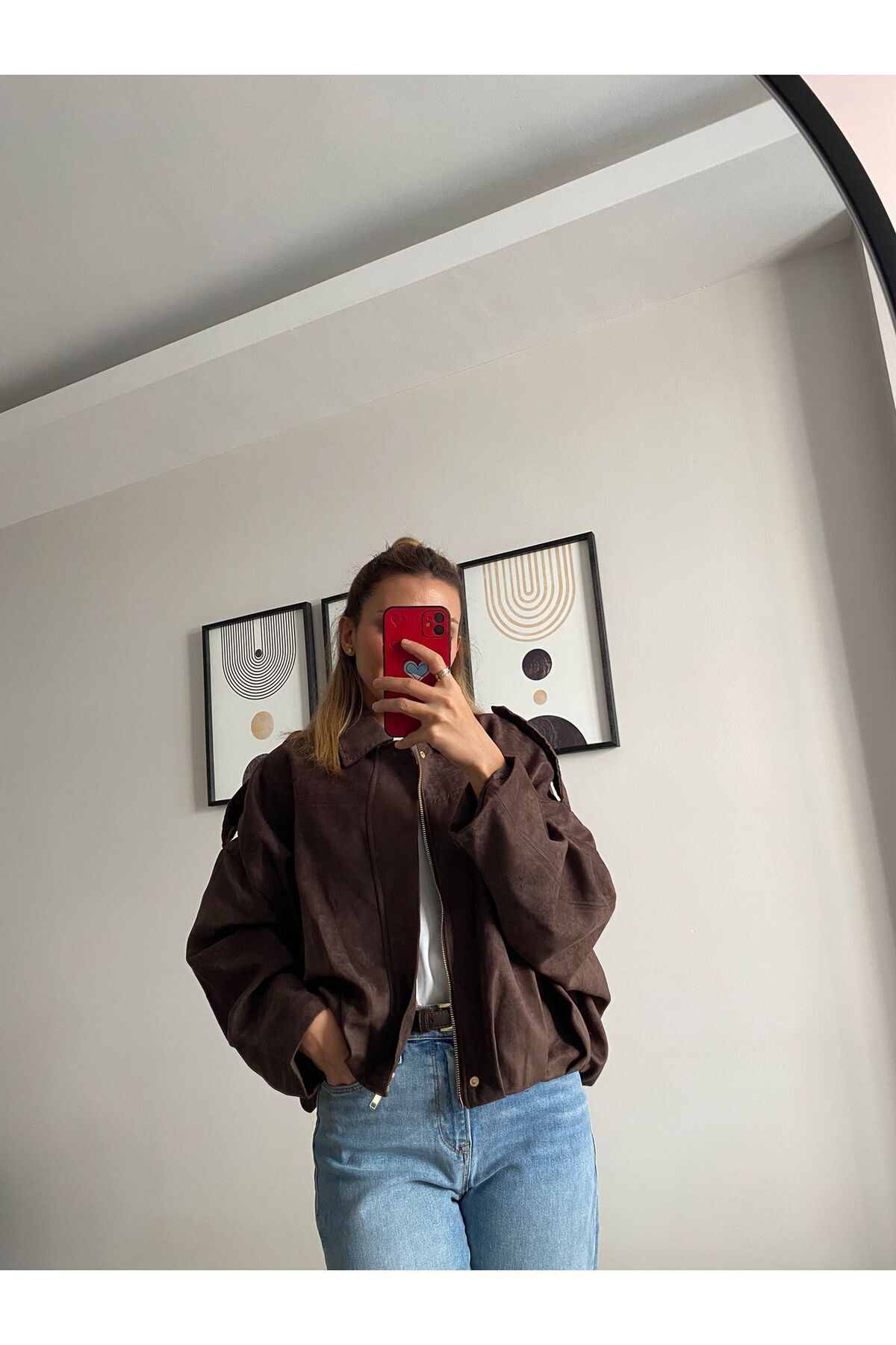 Crop Bomber Kahverengi Süet Ceket Crop Bomber Kahverengi Süet Ceket MA260115 L