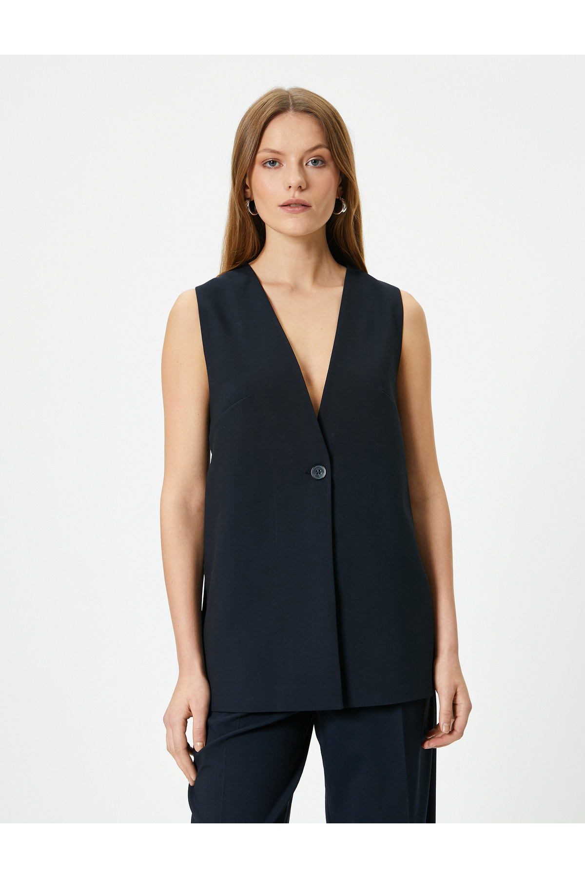 Uzun Kumaş Yelek Kolsuz Düğmeli Rahat Kalıp Uzun Kumaş Yelek Kolsuz Düğmeli Rahat Kalıp 4SPK20007UW 46