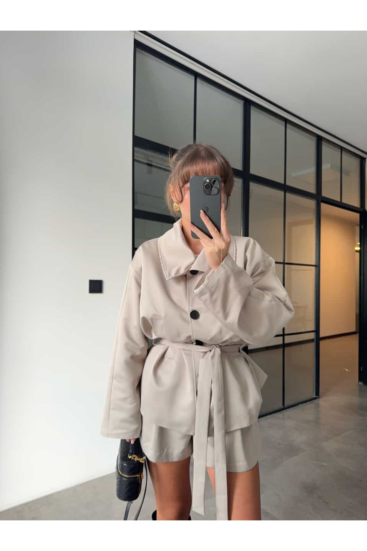 Taş Rengi Coburn Kuşaklı Trençkot Şort Takım Taş Rengi Coburn Kuşaklı Trençkot Şort Takım Htkm1365 L