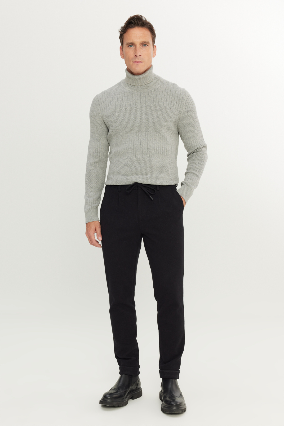 Erkek Siyah Slim Fit Dar Kesim Beli Bağlamalı Yan Cep Esnek Casual Pantolon Erkek Siyah Slim Fit Dar Kesim Beli Bağlamalı Yan Cep Esnek Casual Pantolon ACE001251350 56