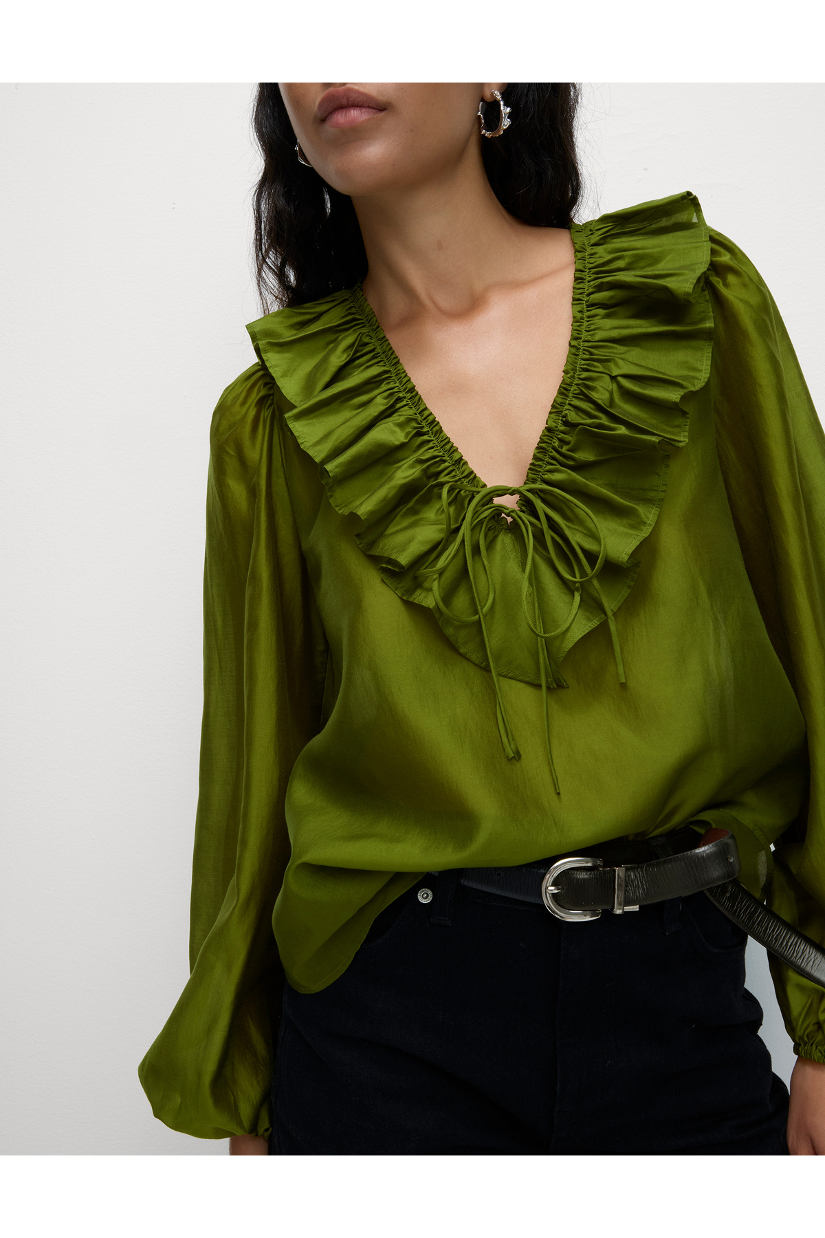 Lyocell Karışımlı Volan Detaylı V Yaka Bluz Lyocell Karışımlı Volan Detaylı V Yaka Bluz T43002916T 52