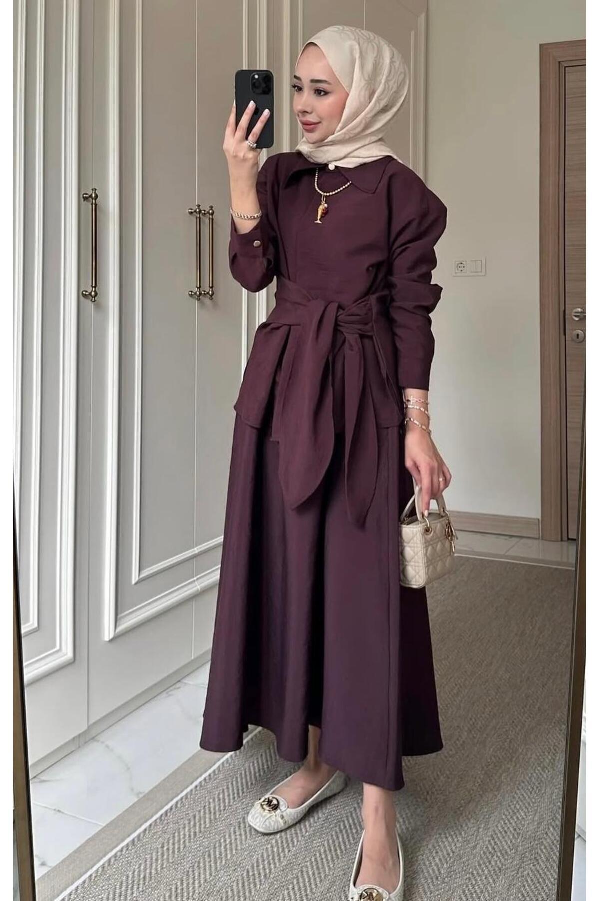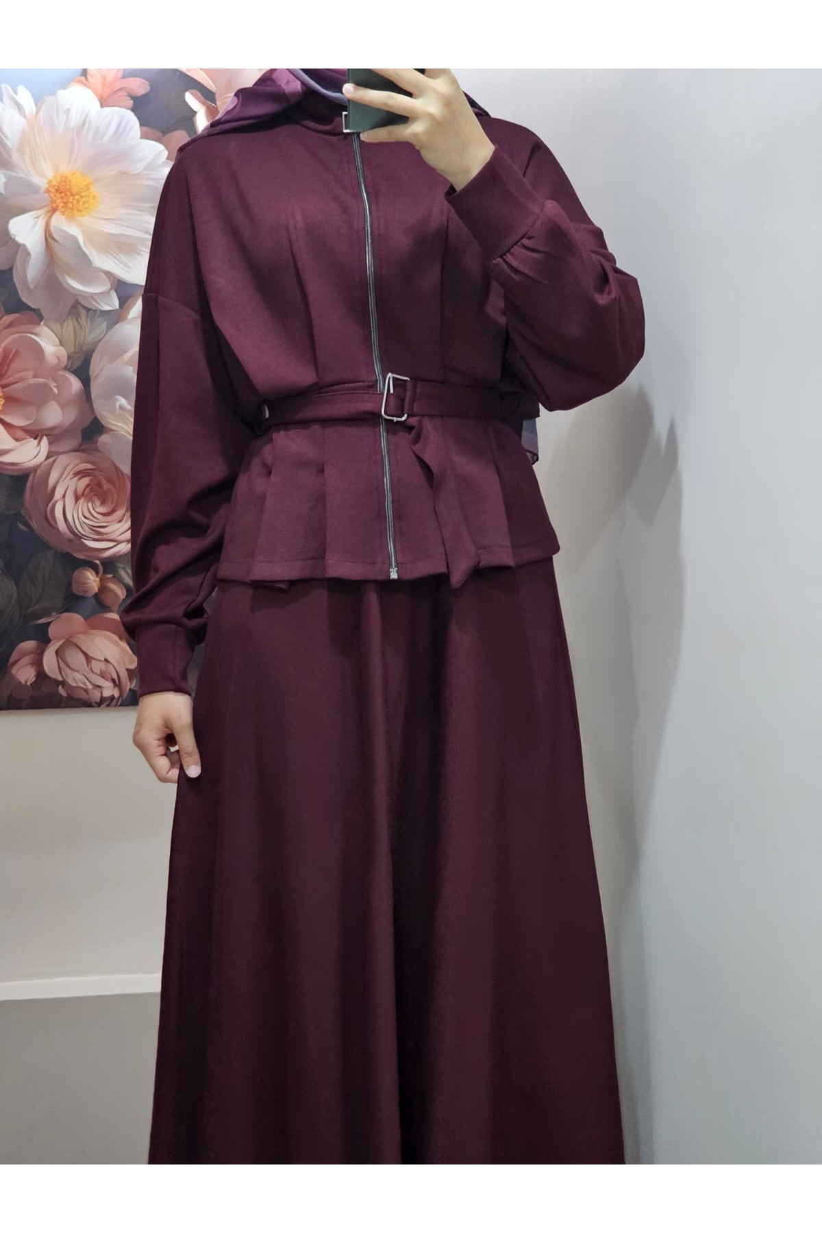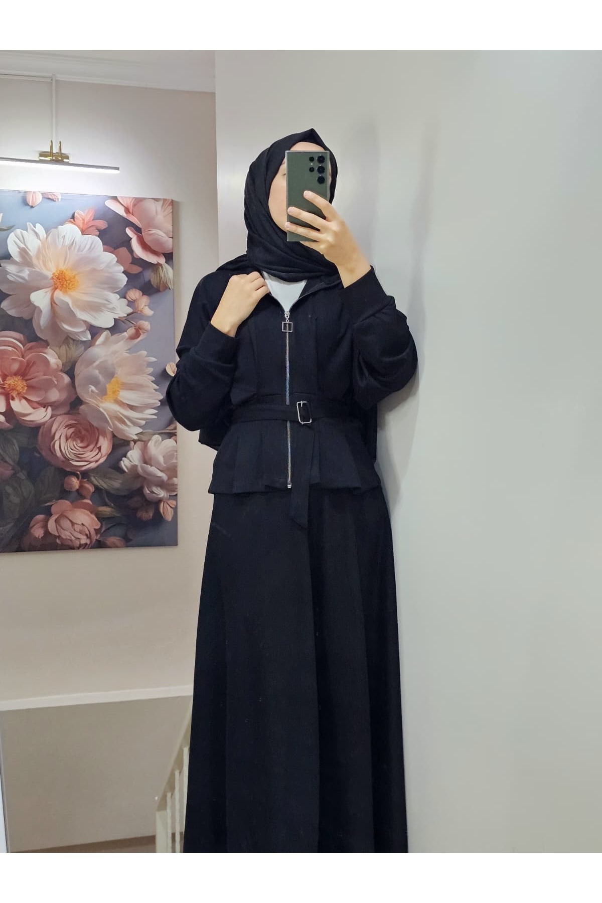 Kadın Tesettür İkili Takım Etekli Ceketli Kuşaklı Eylül Takım Kadın Tesettür İkili Takım Etekli Ceketli Kuşaklı Eylül Takım 31500 40-42