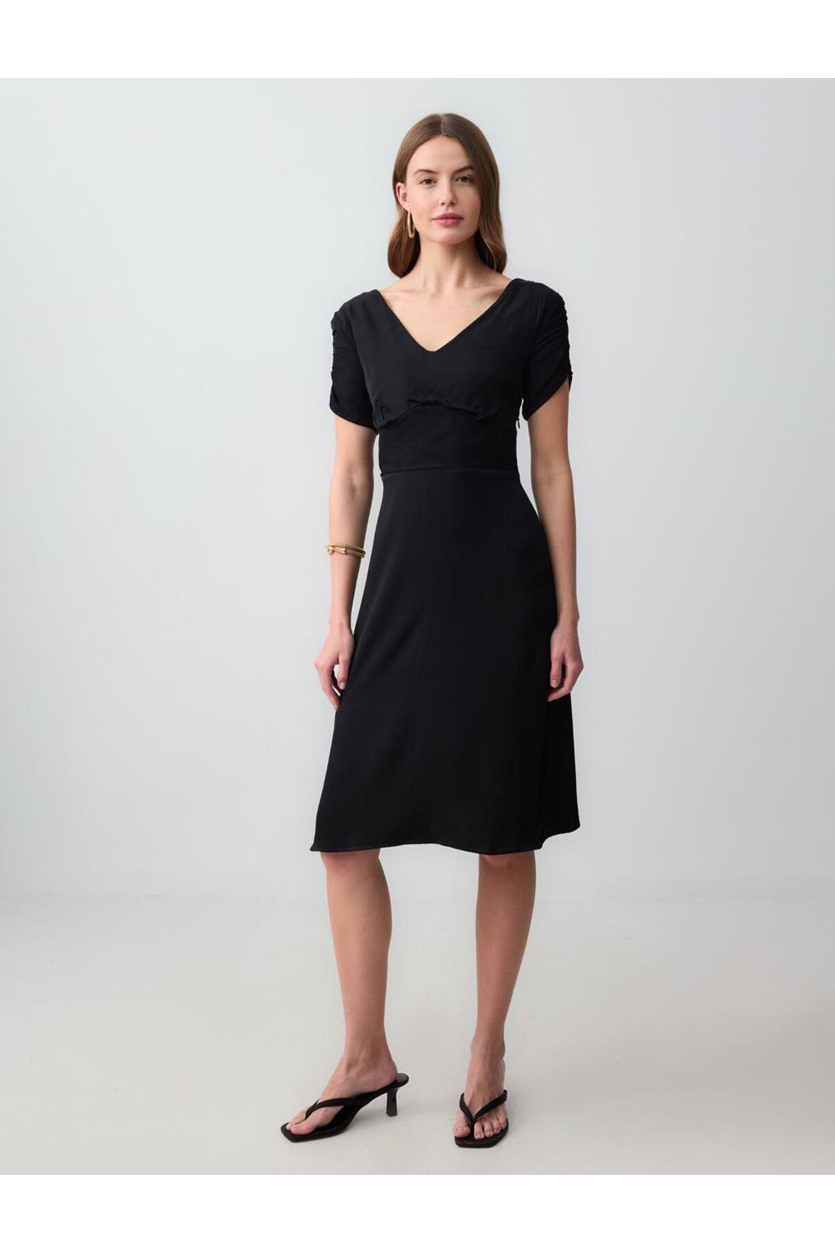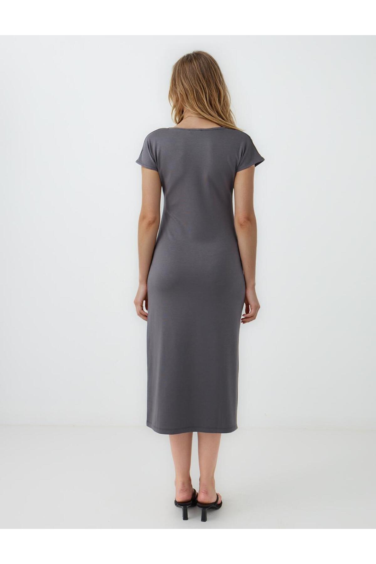 Antrasit Kayık Yaka Düşük Omuz Modal Midi Elbise Antrasit Kayık Yaka Düşük Omuz Modal Midi Elbise 5WW065342 XL