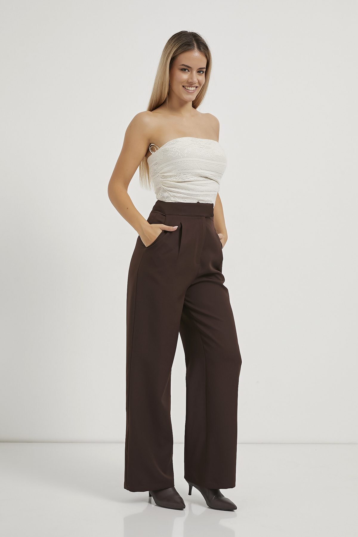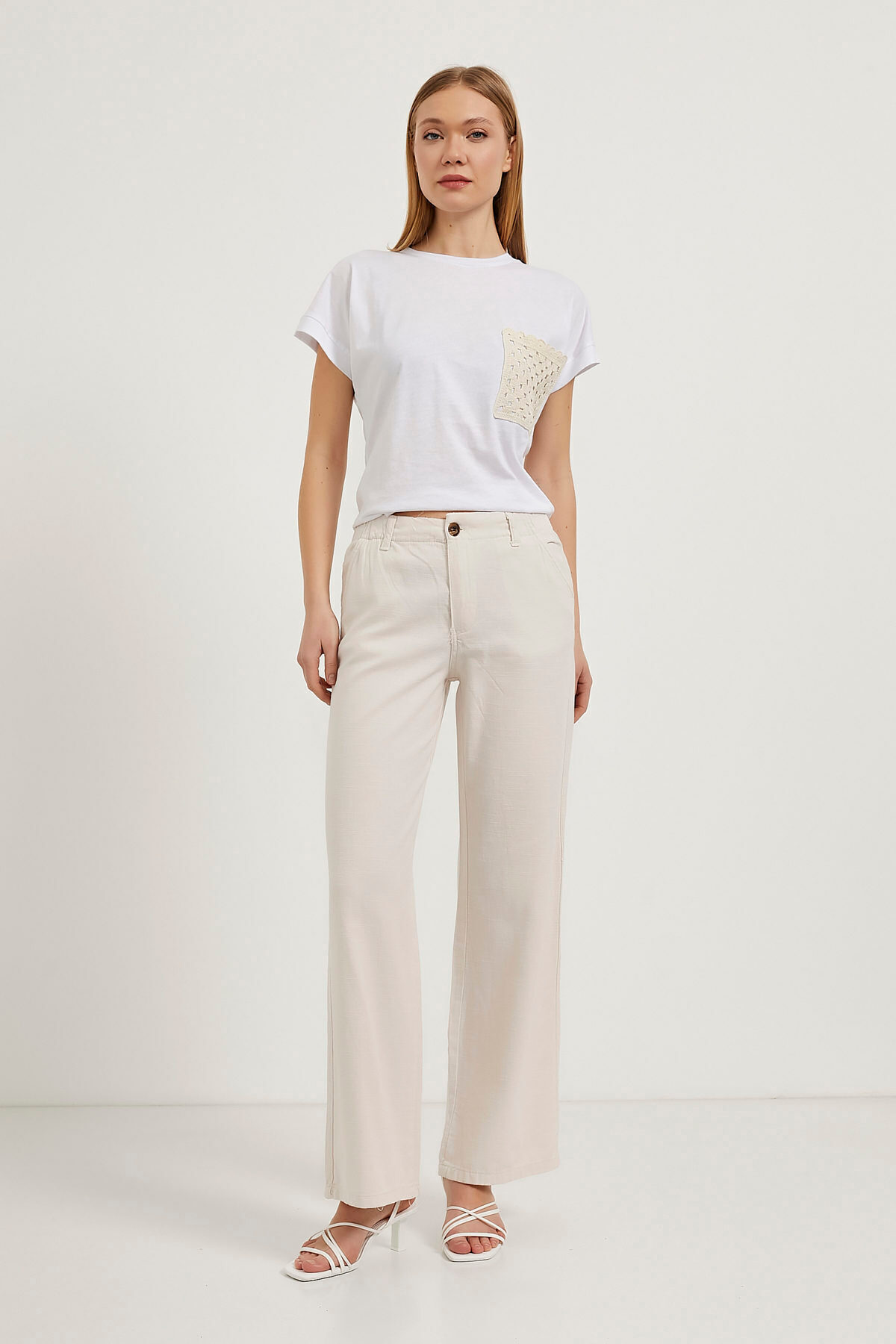 Kadın Beli Lastikli Cırtlı Krem Palazzo Pantolon Kadın Beli Lastikli Cırtlı Krem Palazzo Pantolon 548-5KB3108PTL XL