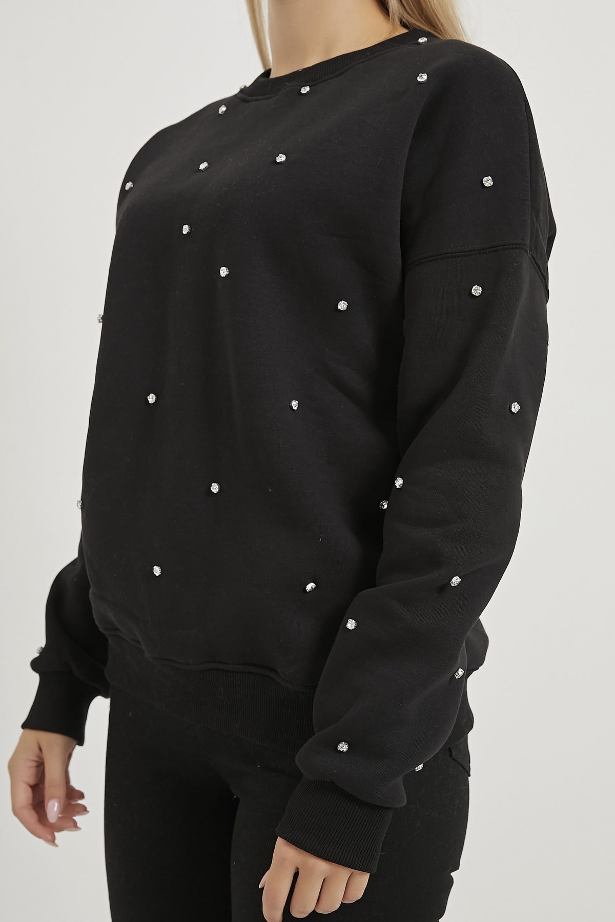 Kadın Bisiklet Yaka Çakım Taşlı Siyah Sweatshirt Kadın Bisiklet Yaka Çakım Taşlı Siyah Sweatshirt 606-5KB4016SWT XL