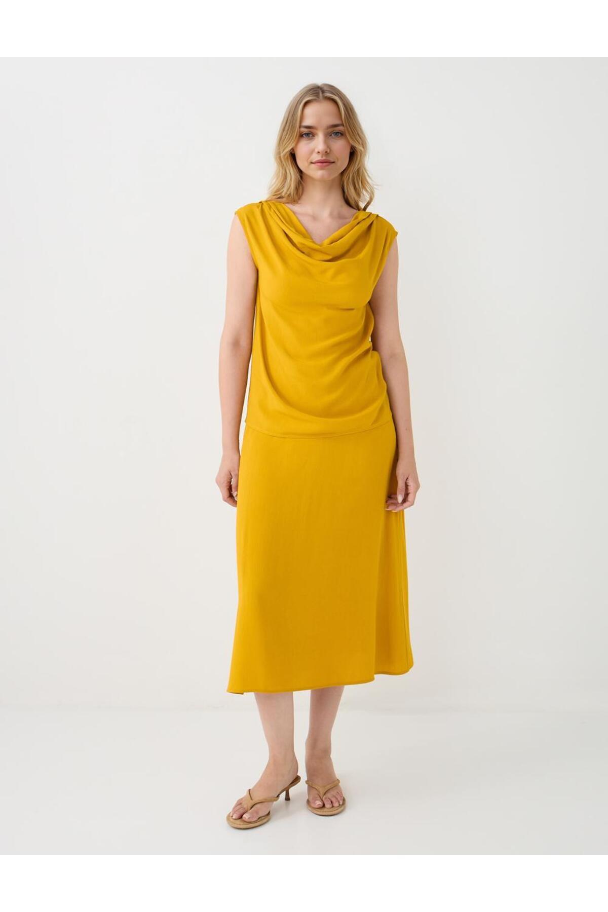Hardal Kayık Yaka Kolsuz Dokuma Bluz Hardal Kayık Yaka Kolsuz Dokuma Bluz 5WW035327 XL