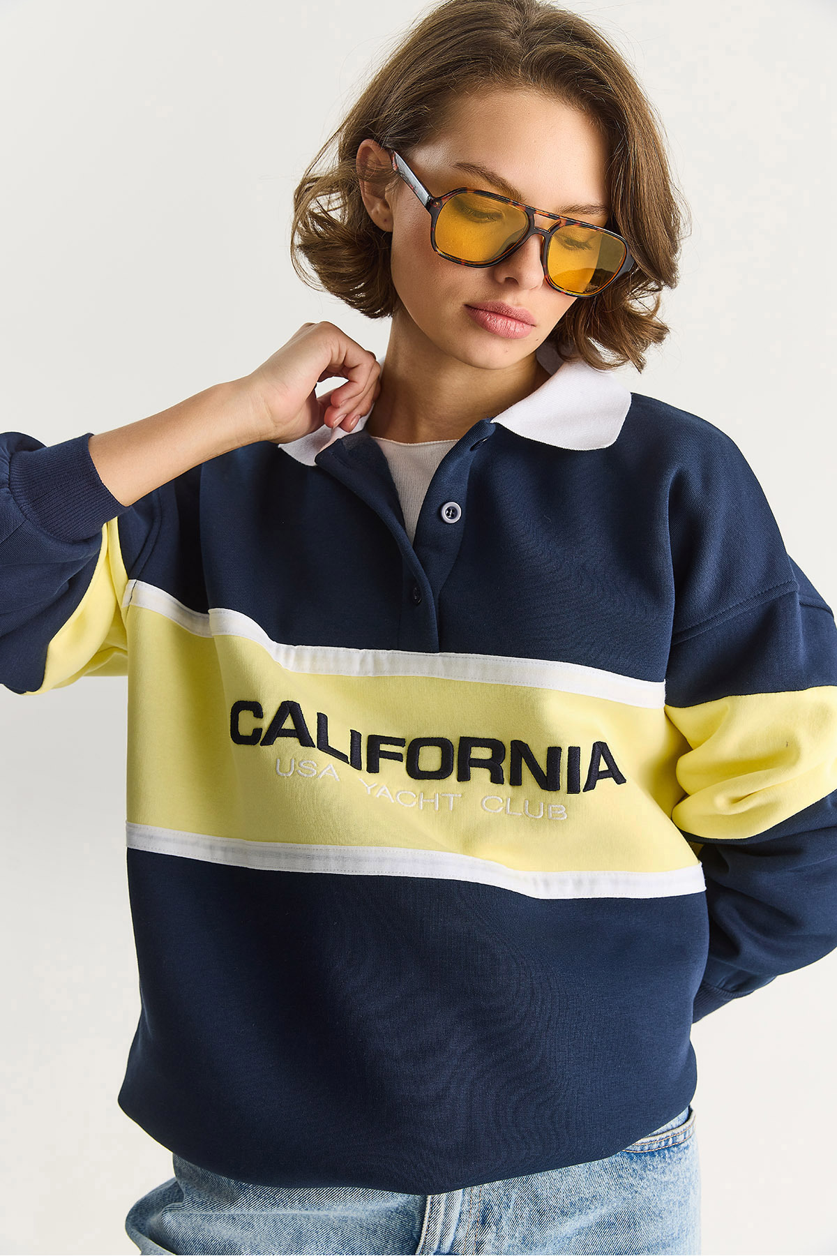 Kadın Polo Yaka Düğmeli California Yazılı Nakış Detaylı Oversize Kadın Sweatshirt 10009 60283563 Kadın Polo Yaka Düğmeli California Yazılı Nakış Detaylı Oversize Kadın Sweatshirt 10009 60283563 L