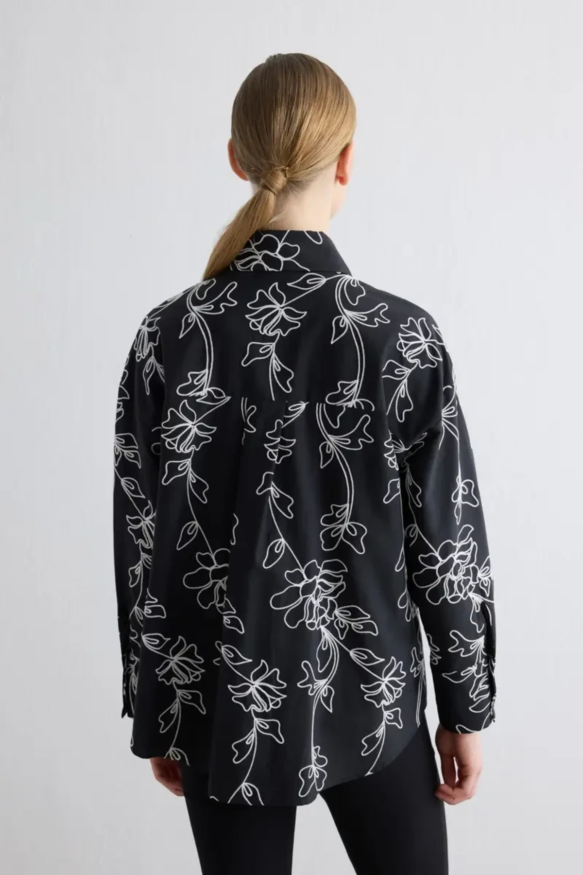 Çiçekli Nakışlı Koton Gömlek - Siyah Çiçekli Nakışlı Koton Gömlek - Siyah 26KG003524 XL