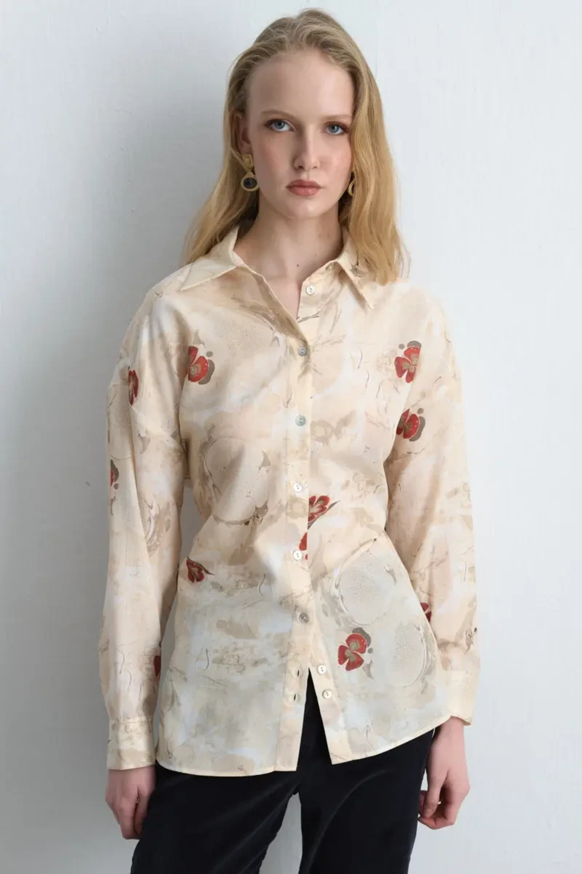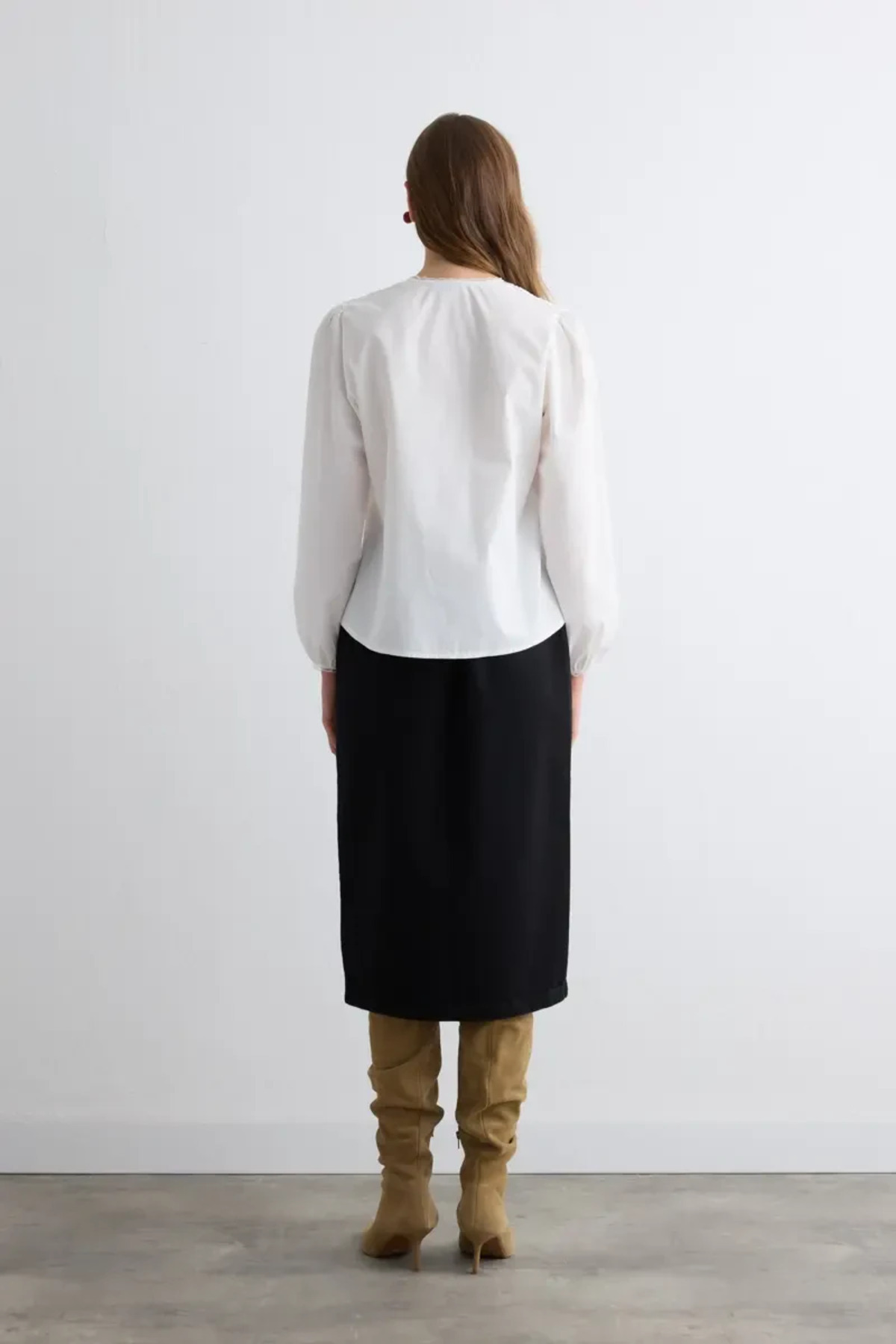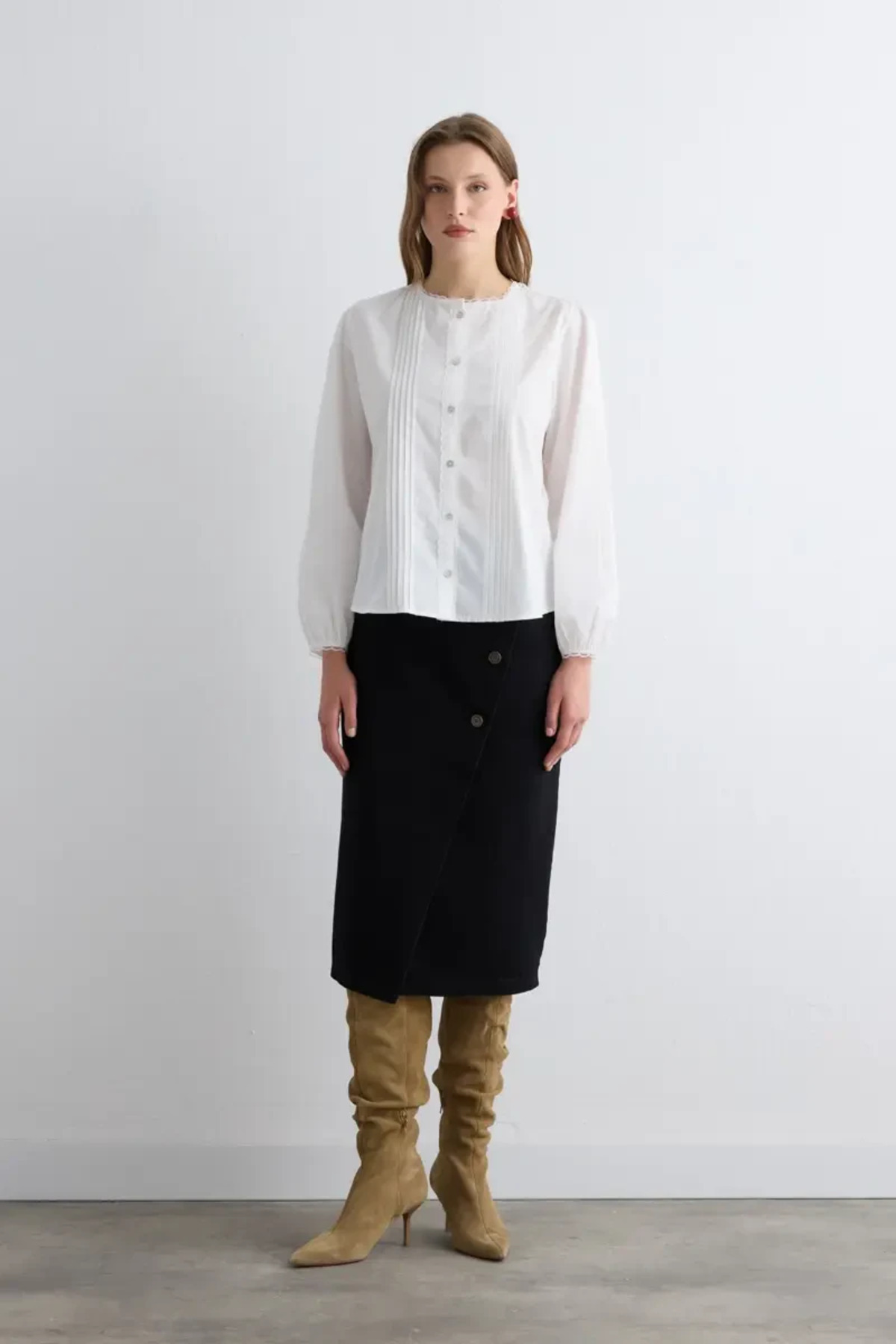 Nervürlü Koton Gömlek - Beyaz Nervürlü Koton Gömlek - Beyaz 26KG003503 XL
