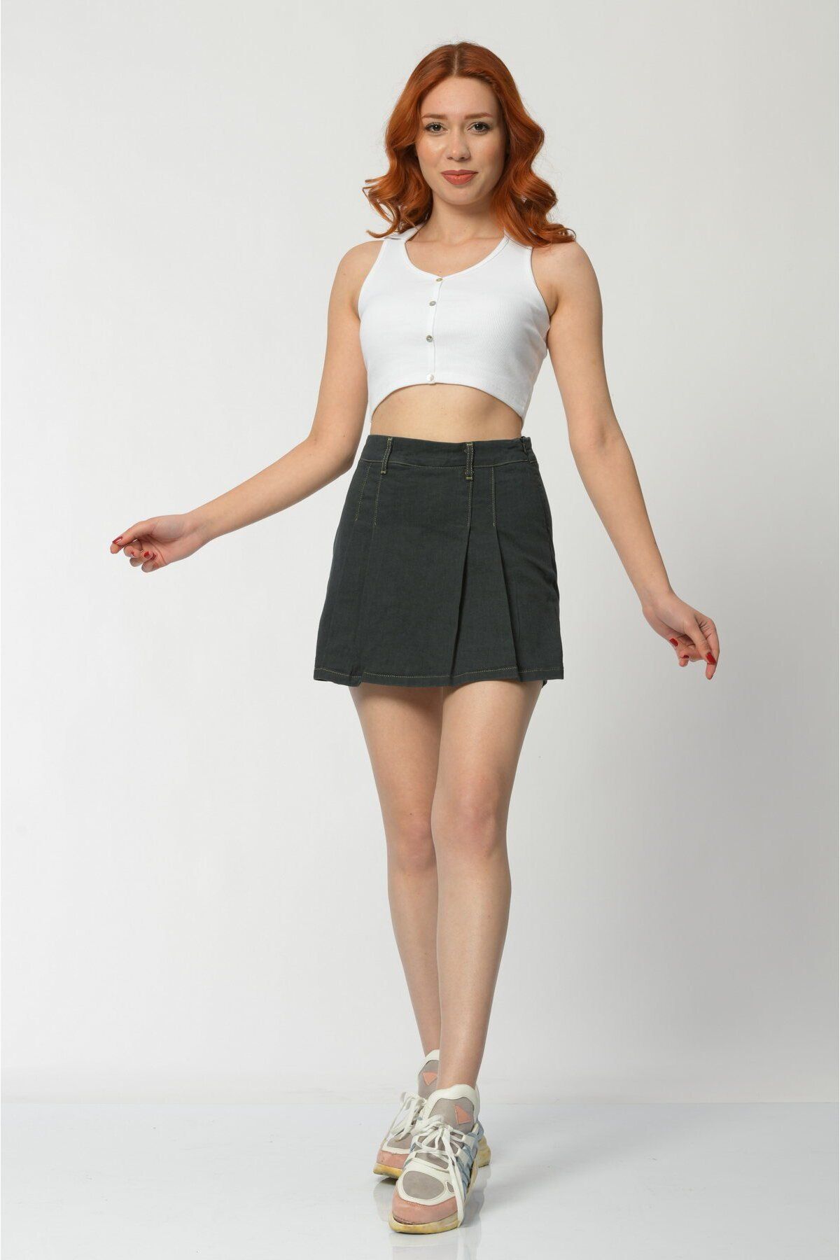 kot kumaşı kalın dokulu şort etek kot kumaşı kalın dokulu şort etek LUUN0019 M