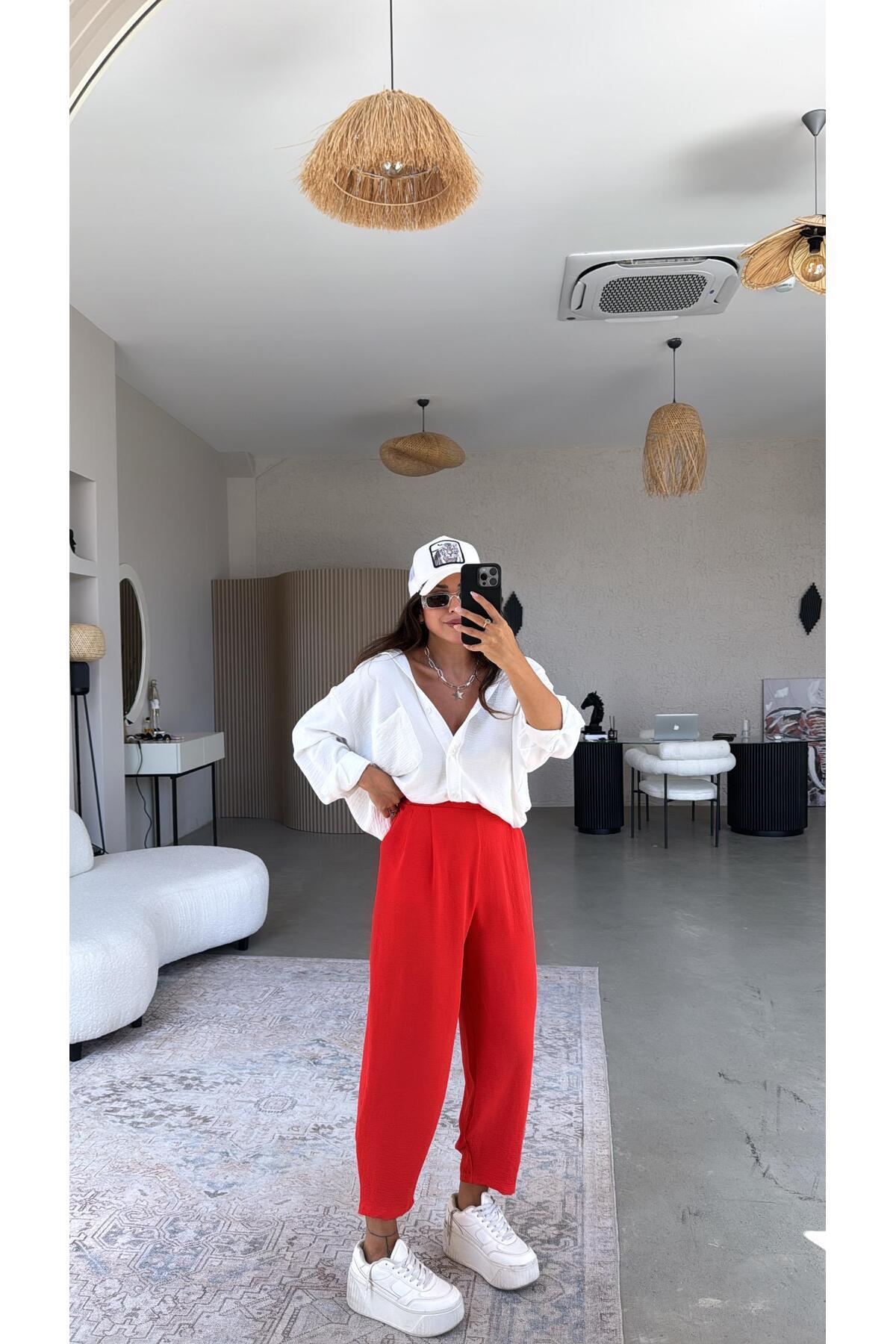Kahverengi Bel Arka Lastik Krep Kumaş Pantolon Kahverengi Bel Arka Lastik Krep Kumaş Pantolon TX5B73BAD84976 XL