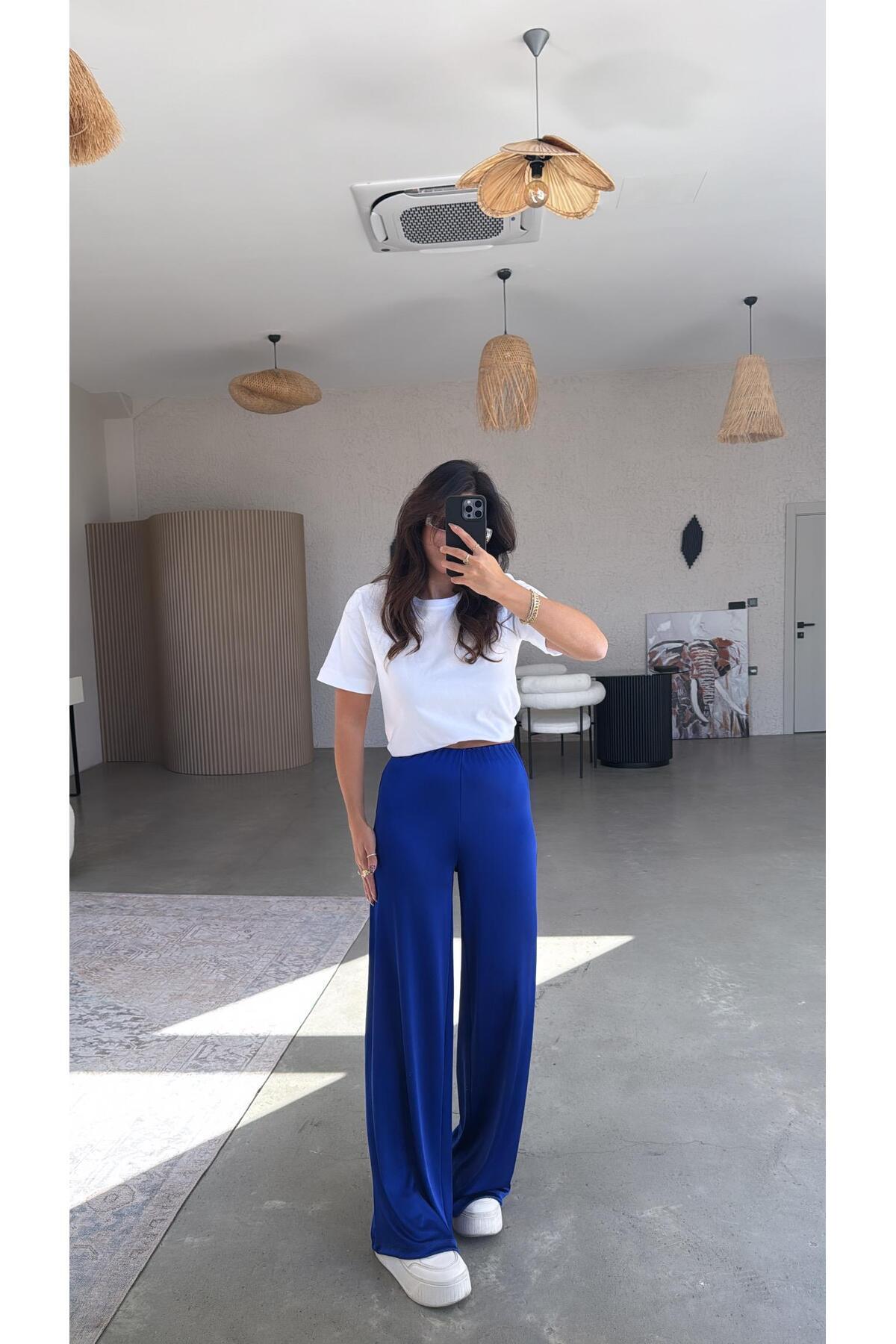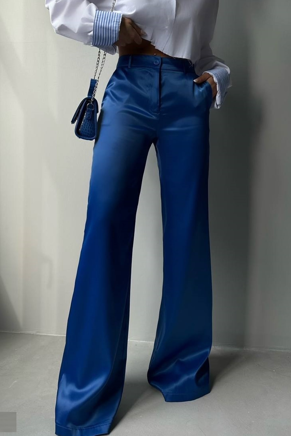 Saks Mavi Dökümlü Tok Saten Pantolon Saks Mavi Dökümlü Tok Saten Pantolon TX5B73BAD84994 XL
