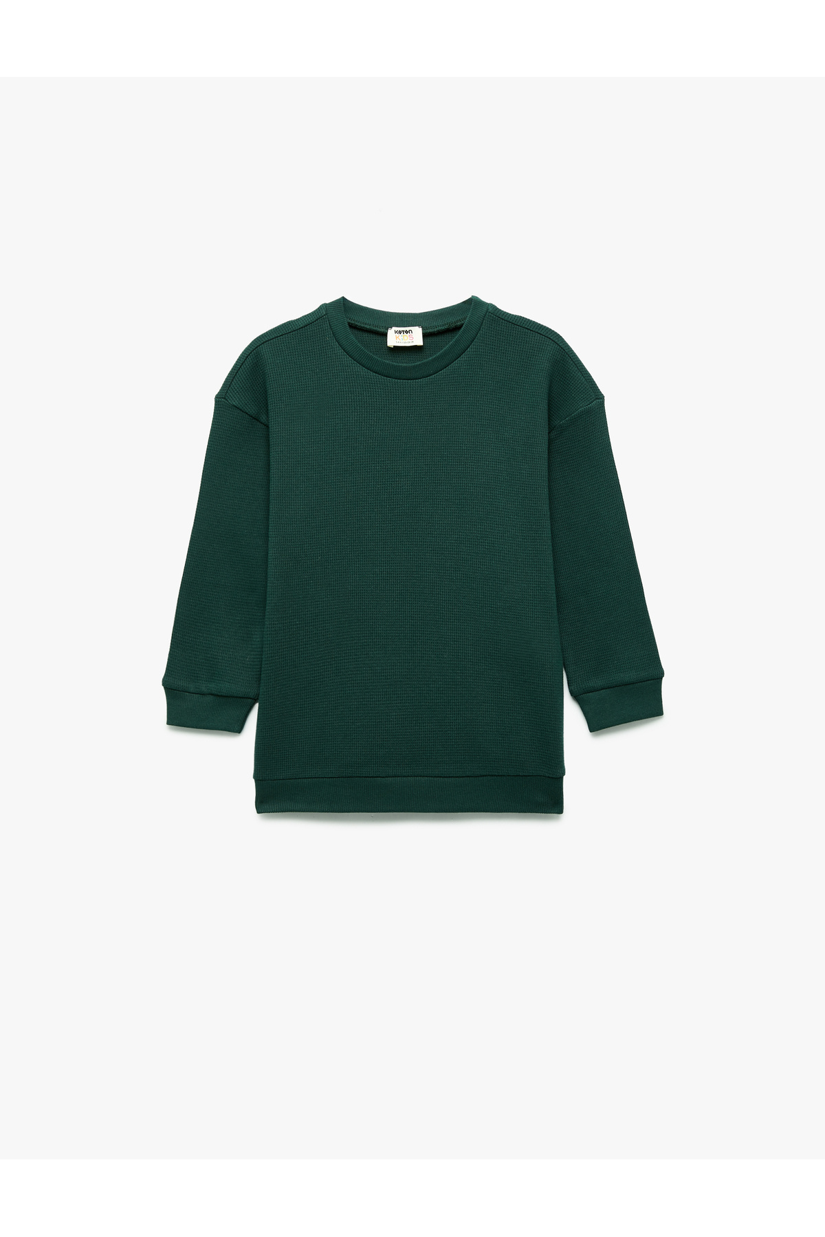 Bisiklet Yaka Uzun Kollu Düğme Detaylı Basic Oversize Sweatshirt Bisiklet Yaka Uzun Kollu Düğme Detaylı Basic Oversize Sweatshirt 6WKB10007TK 13-14 Yaş