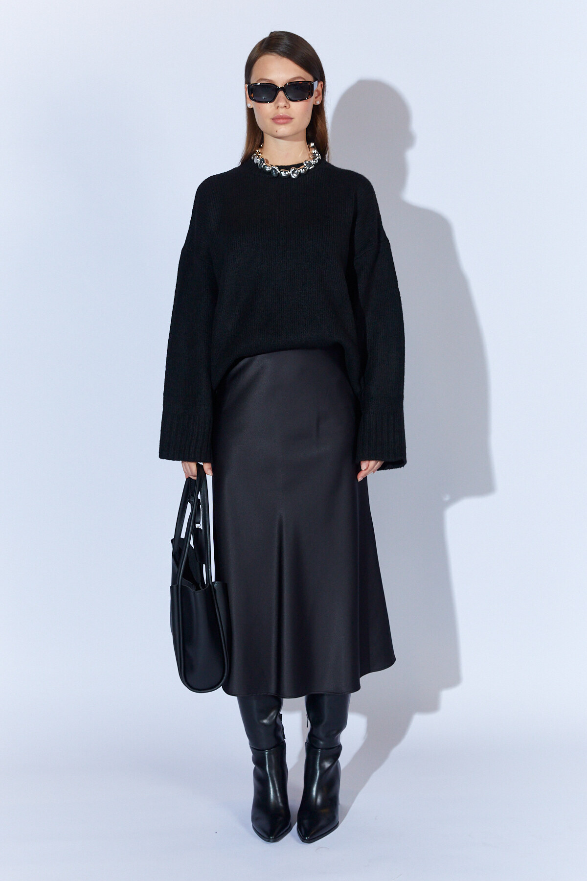Siyah Bisiklet Yaka Oversize Kadın Kazak EK100535344 Siyah Bisiklet Yaka Oversize Kadın Kazak EK100535344 Standart