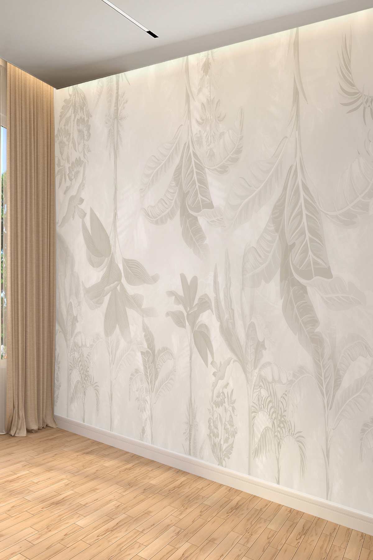 Bej Tropikal Çiçek ve Yaprak Desenli Tek Parça Silinebilir Tekstil Duvar Kağıdı Bej Tropikal Çiçek ve Yaprak Desenli Tek Parça Silinebilir Tekstil Duvar Kağıdı DW2025-275 450 x 240